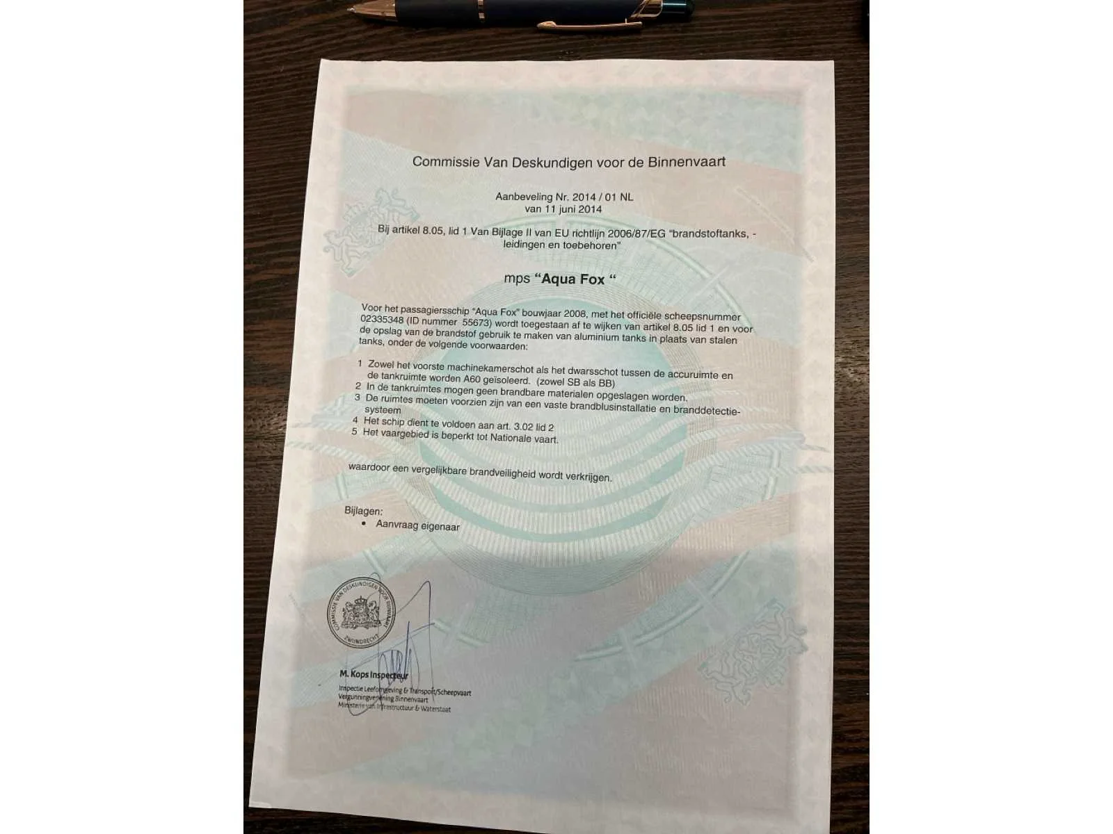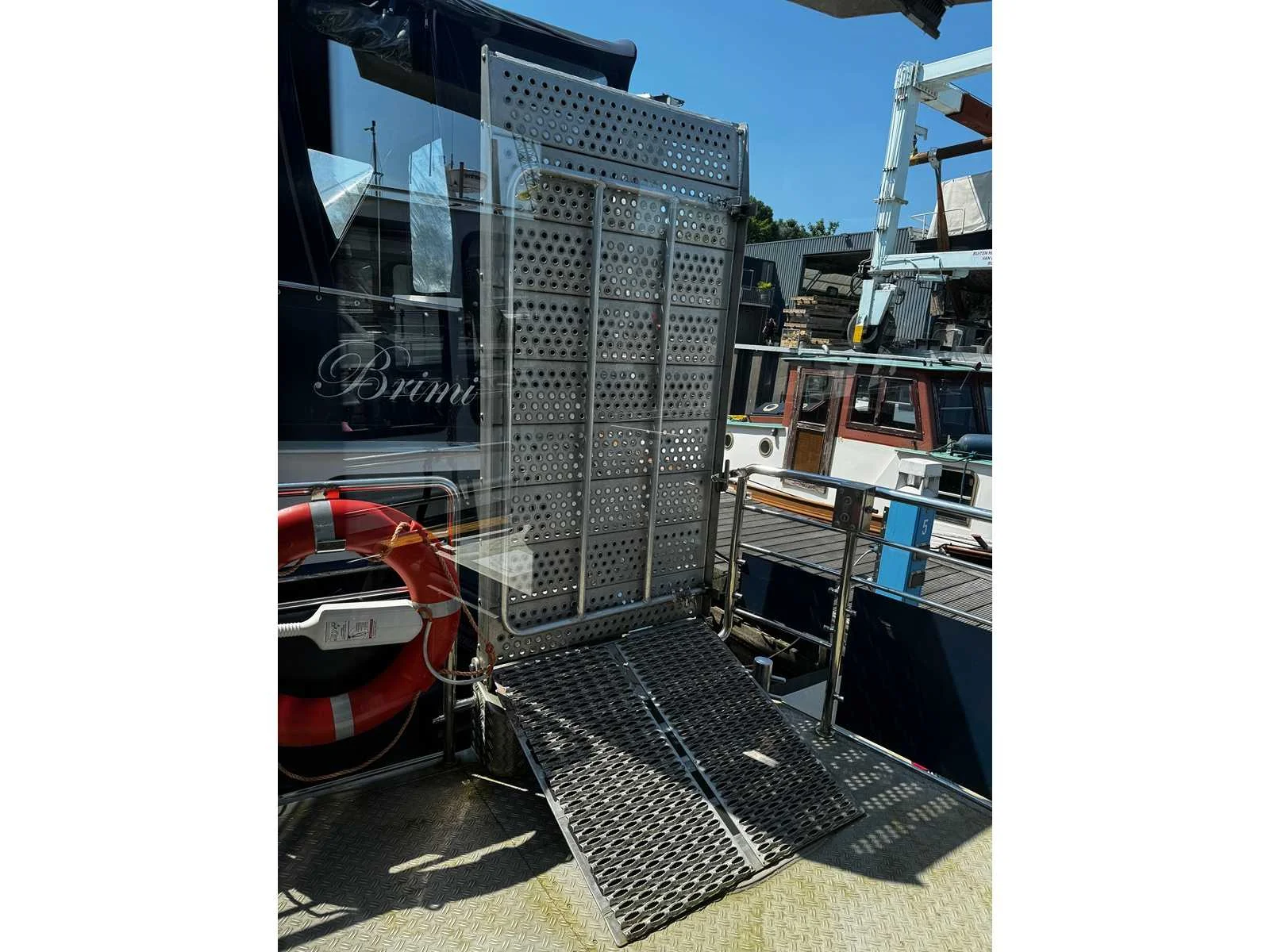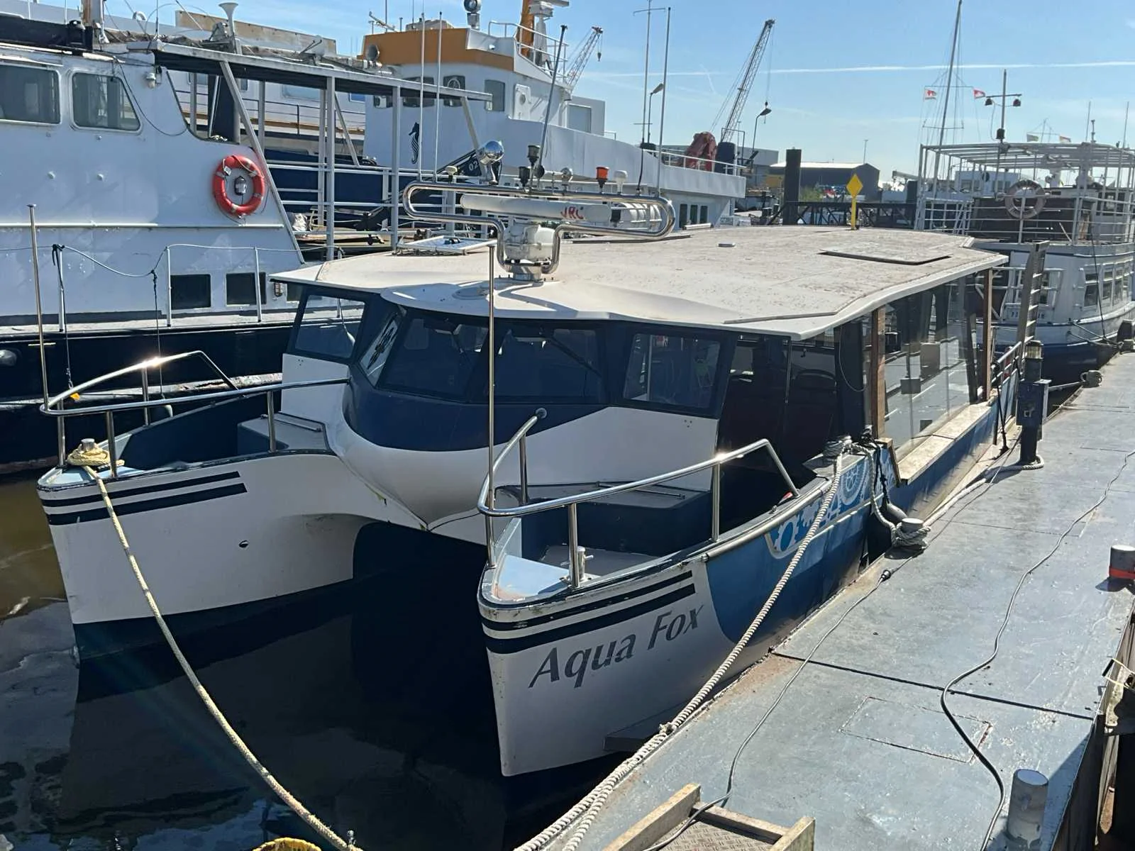 Lengte over alles 14,38 meter, breedte over alles 5,10 meter, grootste diepgang 0,95 meter, 2x Volvo DS-110 6 cilinder dieselmotor, totaal 162kW, max 42 passagiers, waterverplaatsing 14,005m3, afbouw door Damen Shipyards in 2012, polyester catamaran onderschip, 2x elektrische bedienbare loopbruggen, doorvaarthoogte 4,7 meter Merk: Damen/Fontaine Pajot Bouwjaar: 2008 Serienummer: 35348B2012