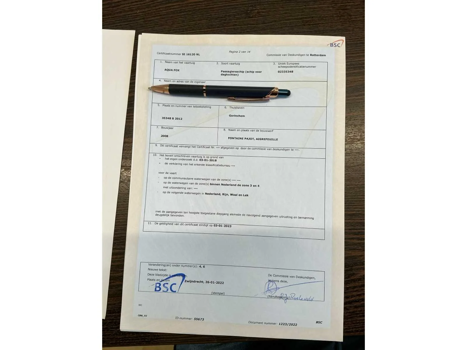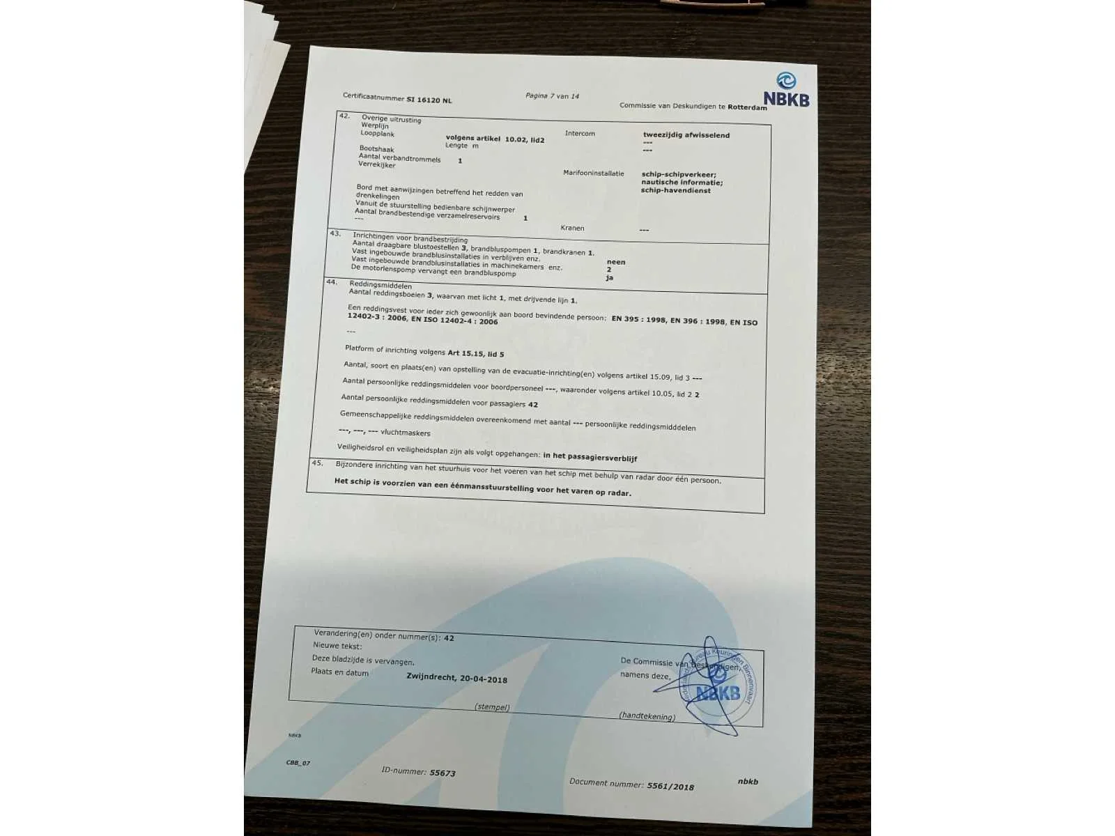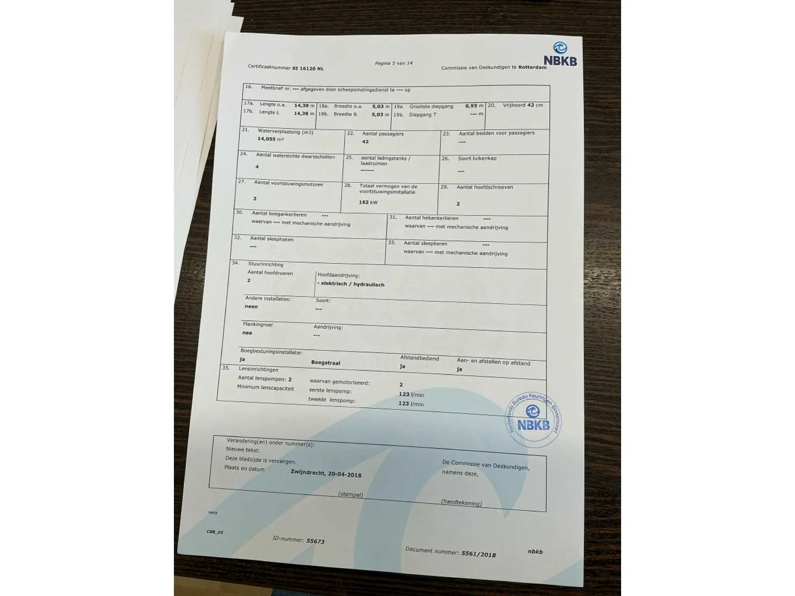 Lengte over alles 14,38 meter, breedte over alles 5,10 meter, grootste diepgang 0,95 meter, 2x Volvo DS-110 6 cilinder dieselmotor, totaal 162kW, max 42 passagiers, waterverplaatsing 14,005m3, afbouw door Damen Shipyards in 2012, polyester catamaran onderschip, 2x elektrische bedienbare loopbruggen, doorvaarthoogte 4,7 meter Merk: Damen/Fontaine Pajot Bouwjaar: 2008 Serienummer: 35348B2012