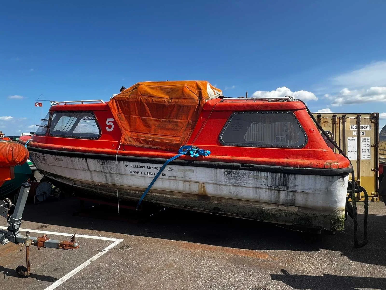 Totale lengte 8,5 meter, breedte 2,85 meter, max diepgang 1,45 meter, voorzien van waterjet aandrijving, Volvo diesel, let op zonder stallingsbok, dit kavel is wegtransportabel. Merk: Mulder en Rijke Serienummer: 5029