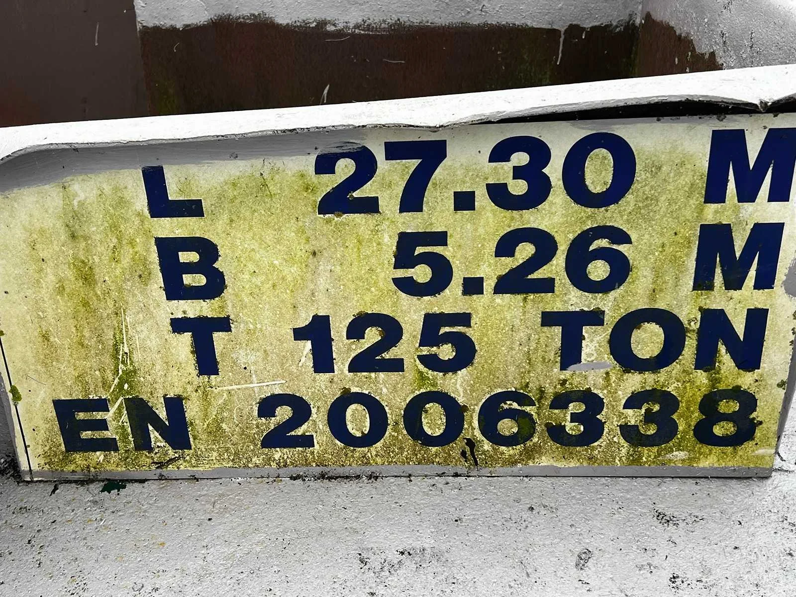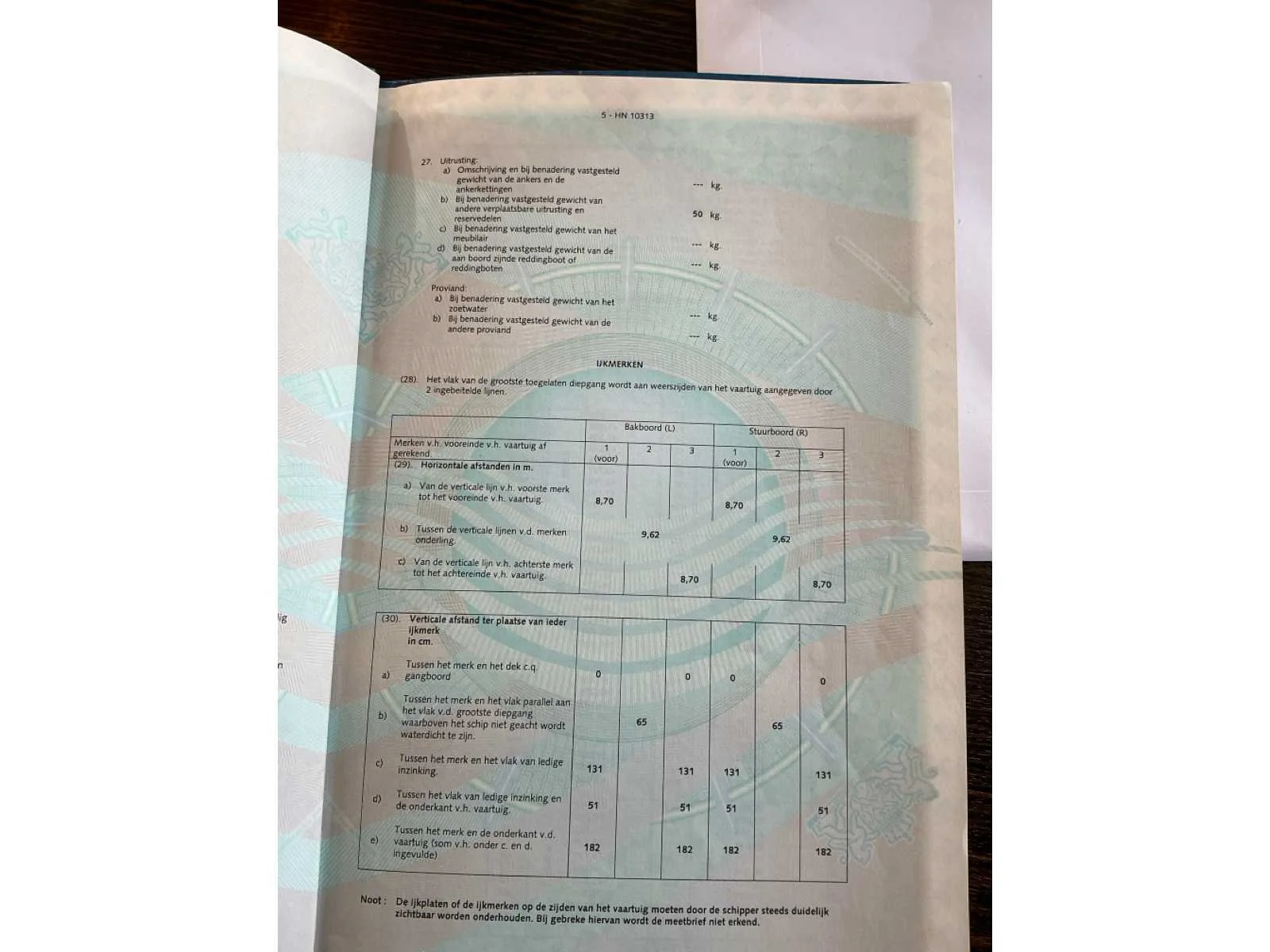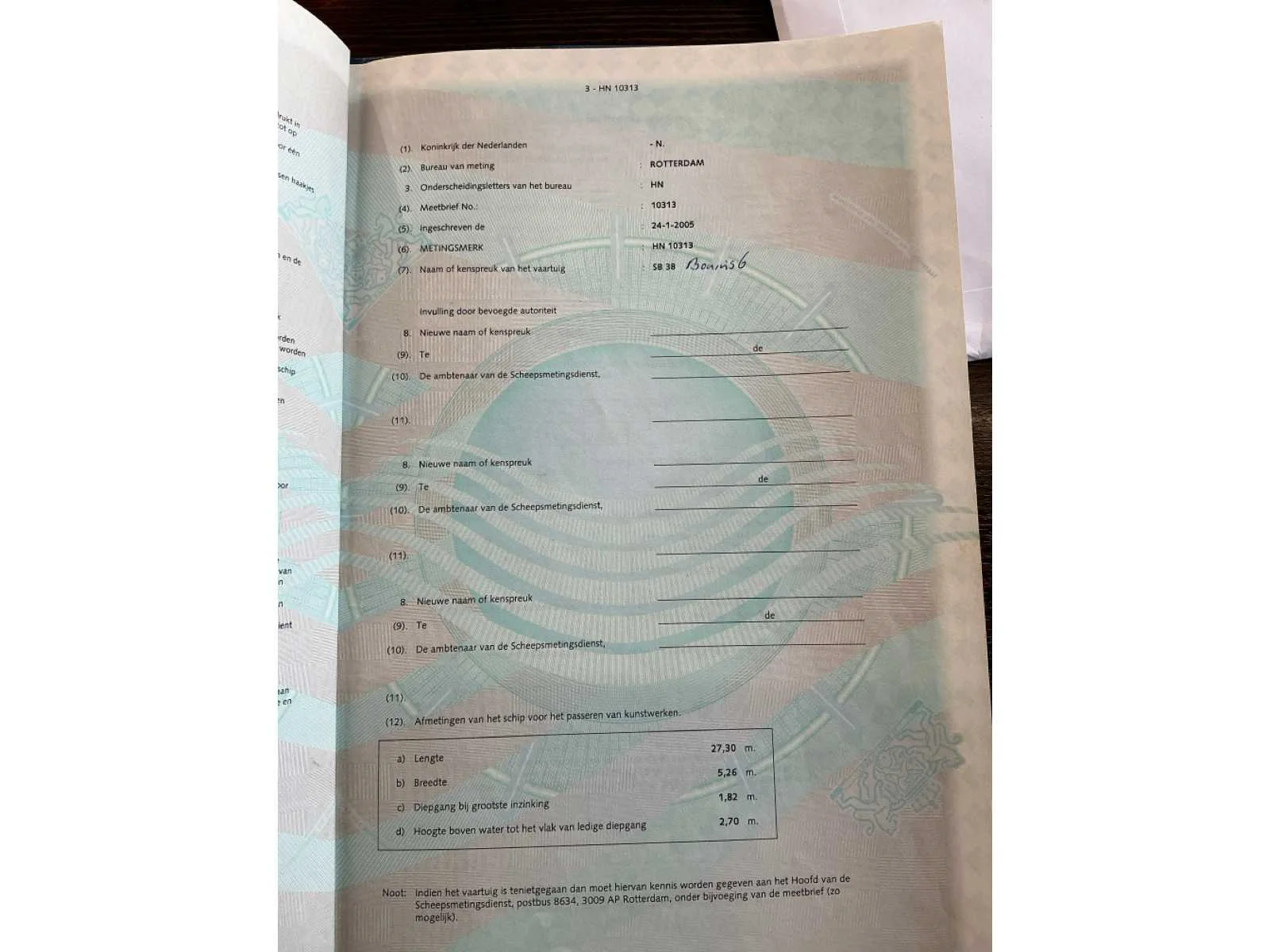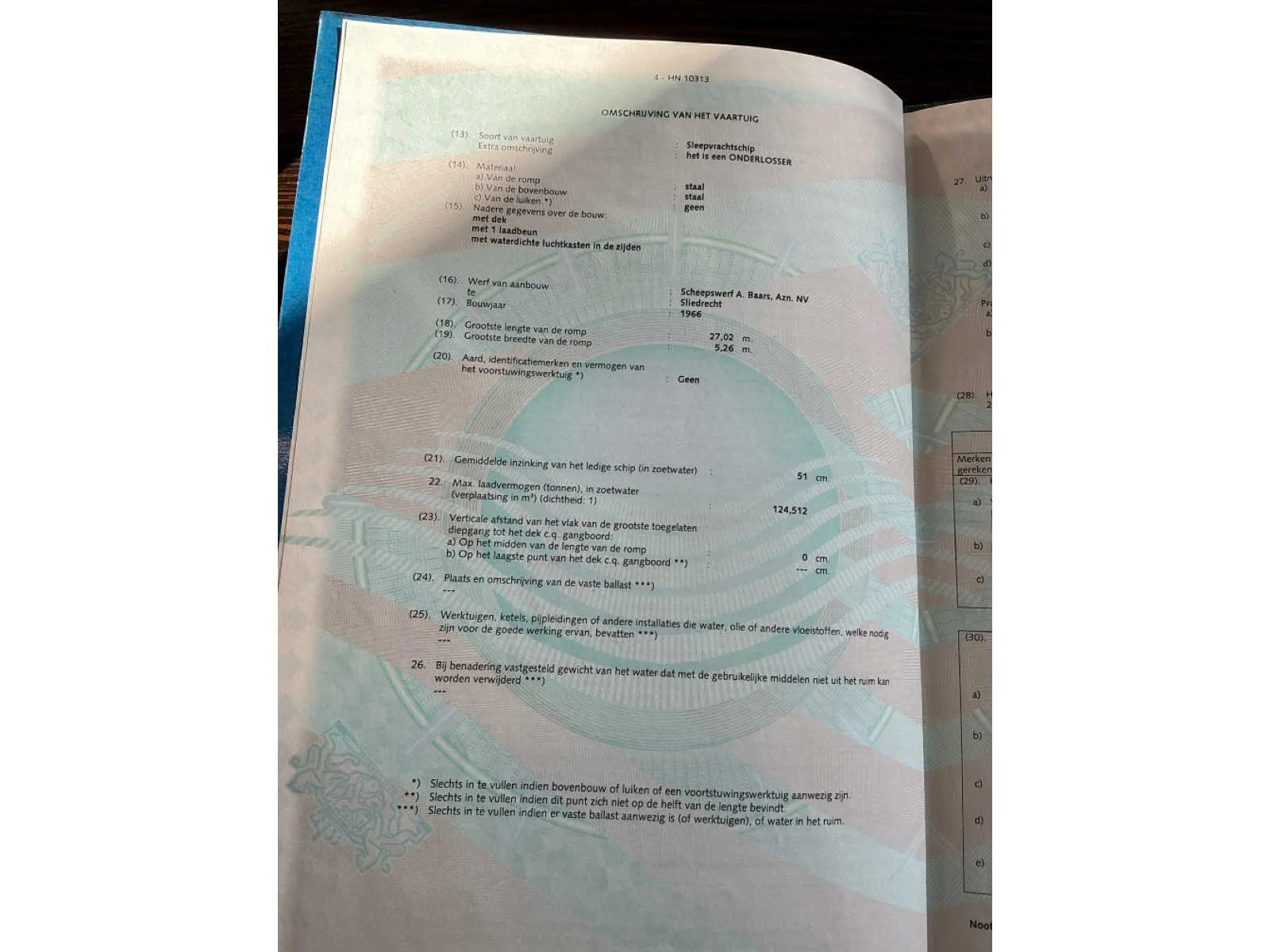 Onderlosser, voorzien van 1x boeganker 287kg met 40 meter ketting Bouwjaar: 1966 Serienummer: EU nummer Scheepswerf: Baars 1966 Lengte over alles: 27.3m Breedte formaat: 5.26m Maximale diepgang: 1.82m Laadvermogen: 125t Rompmateriaal: Staal gelast
