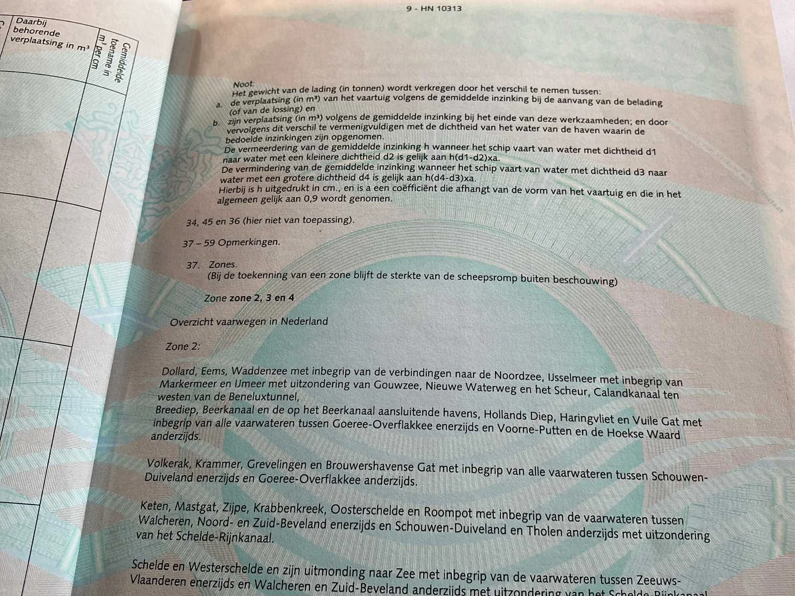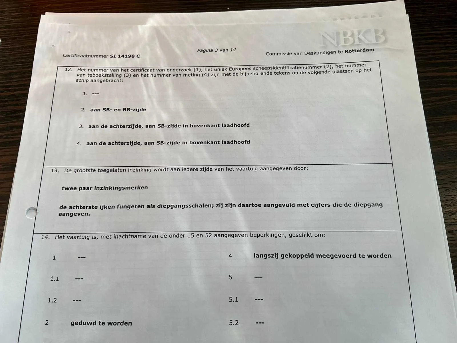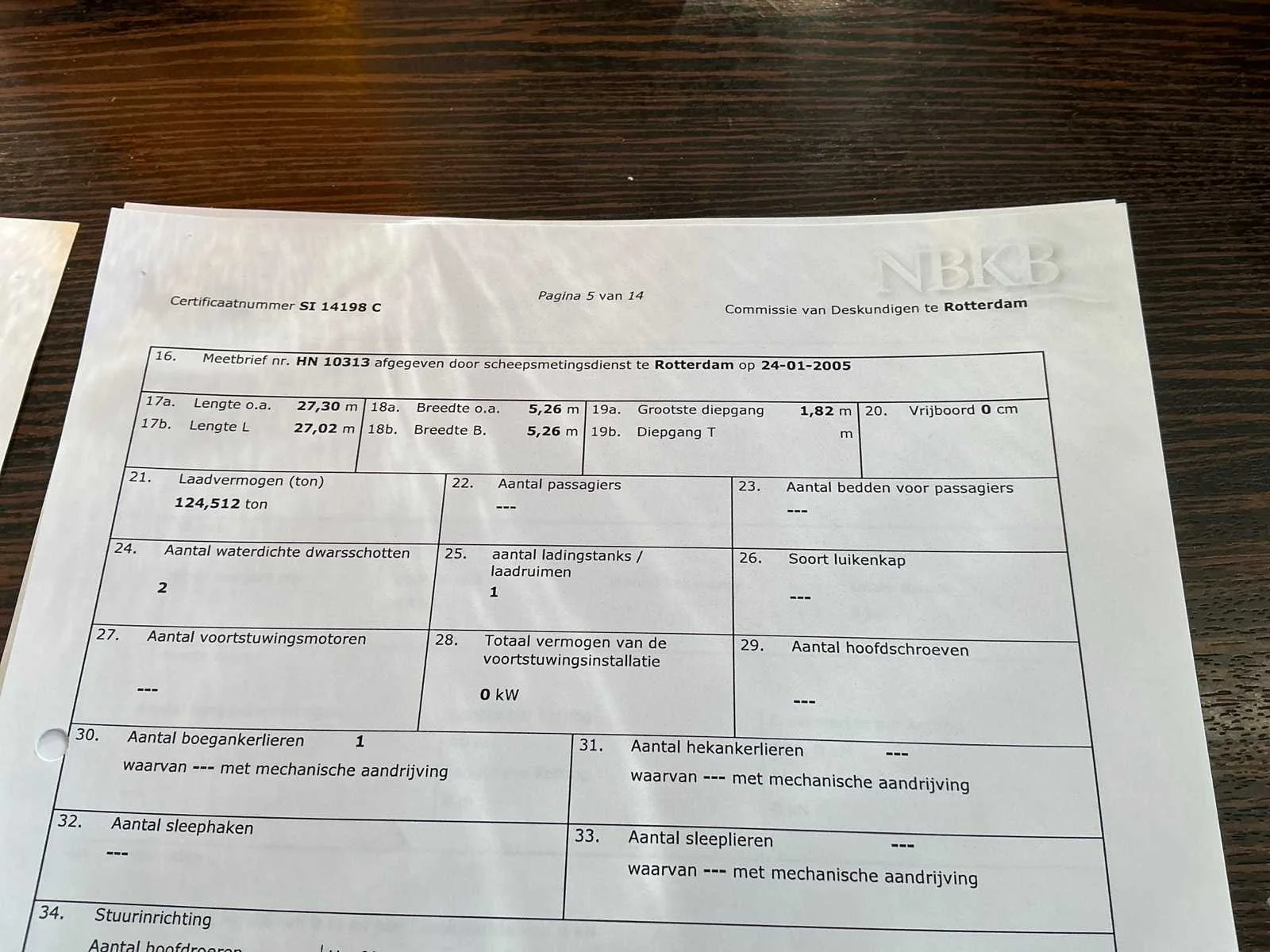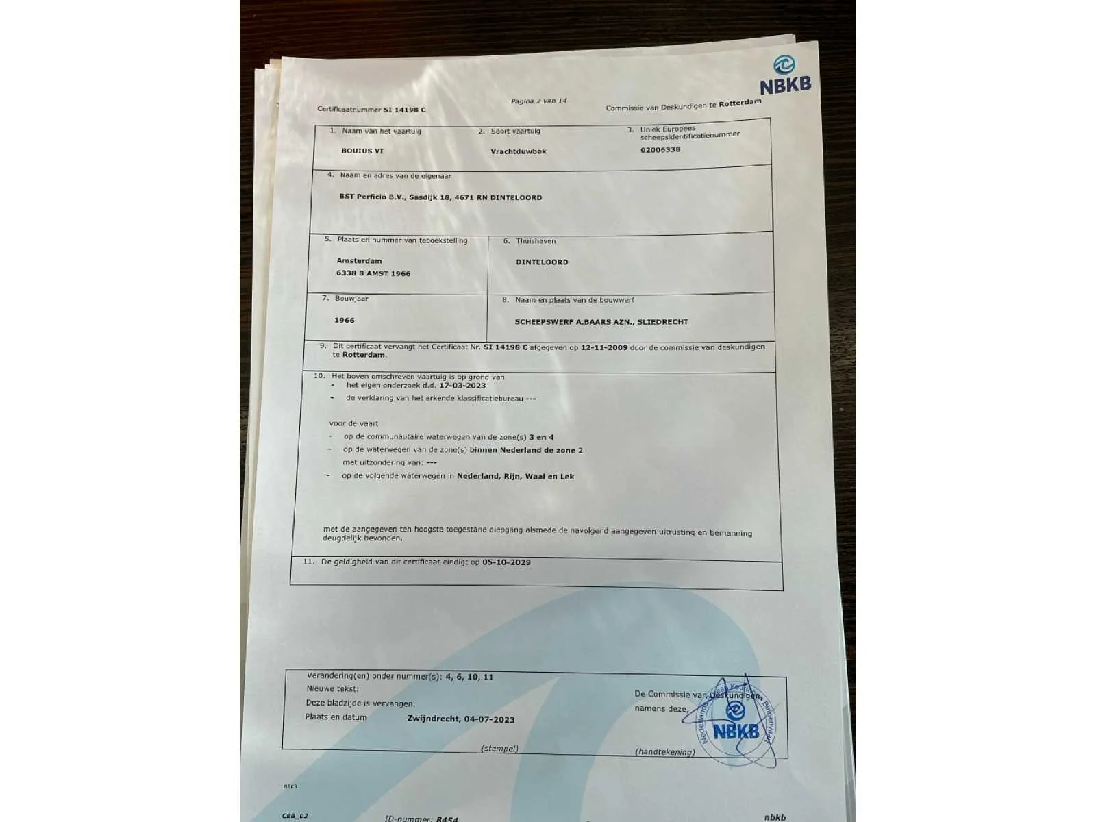 Onderlosser, voorzien van 1x boeganker 287kg met 40 meter ketting Bouwjaar: 1966 Serienummer: EU nummer Scheepswerf: Baars 1966 Lengte over alles: 27.3m Breedte formaat: 5.26m Maximale diepgang: 1.82m Laadvermogen: 125t Rompmateriaal: Staal gelast