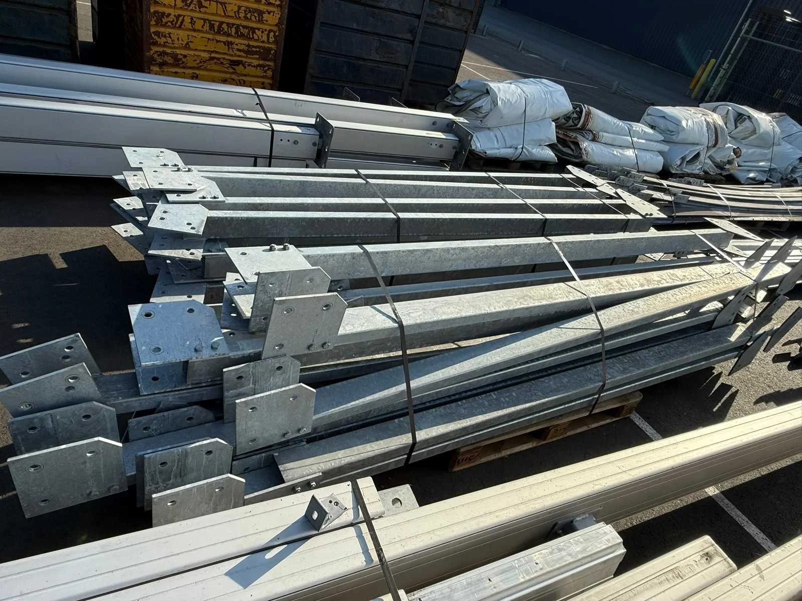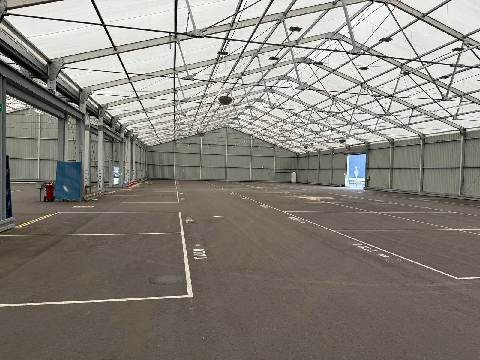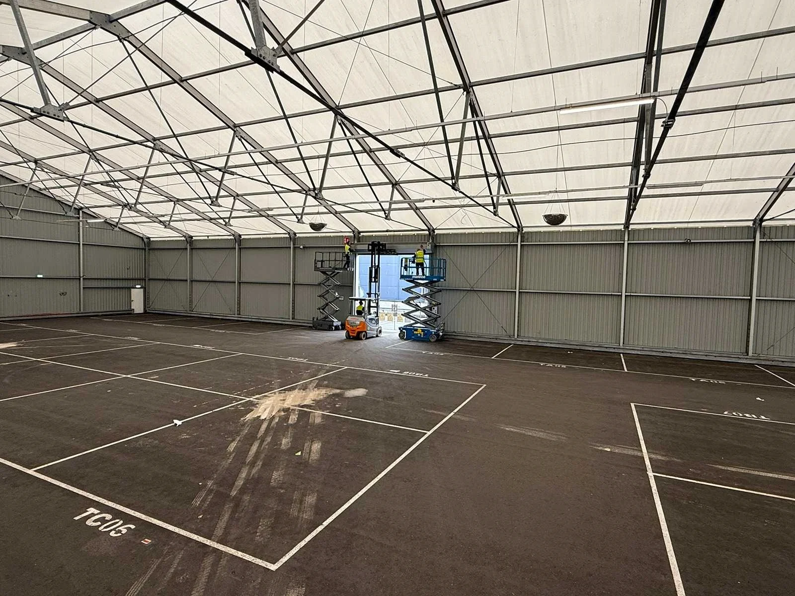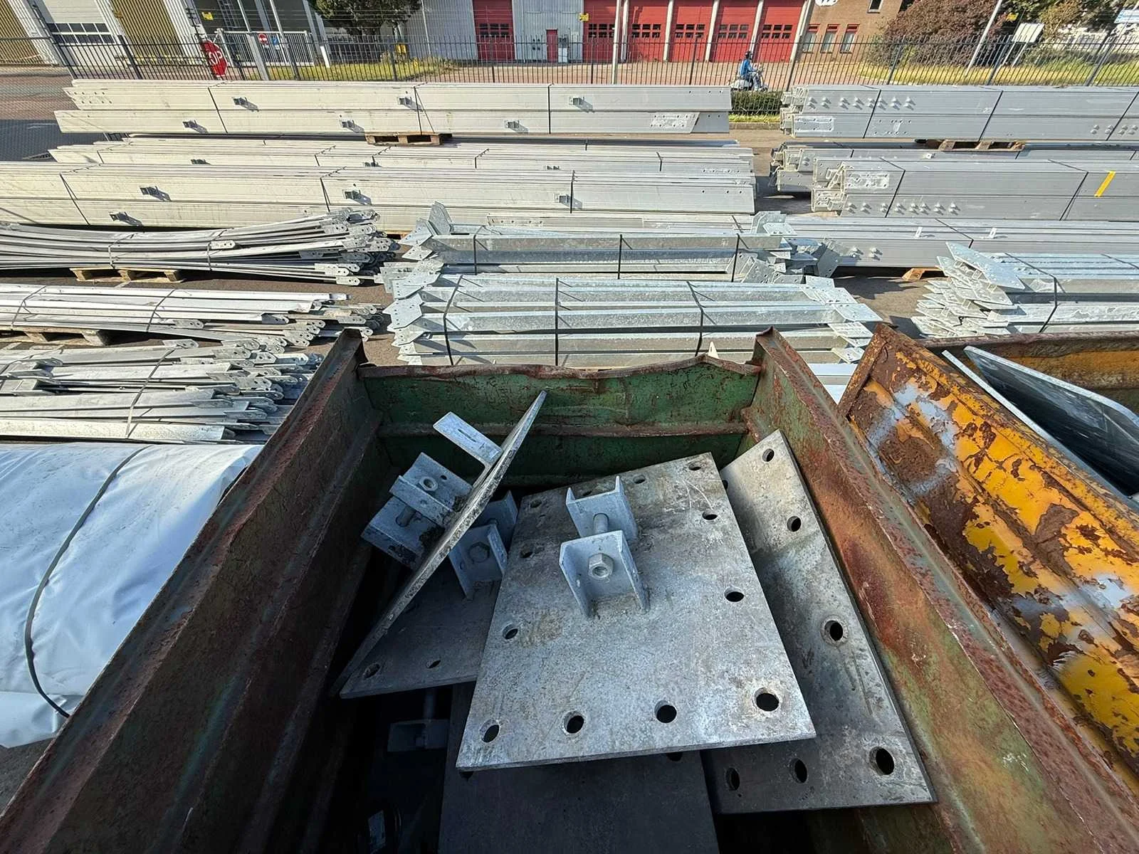 Alu hal/semi permanente hal van ca 2.466 m2. Hal is reeds gedemonteerd en gereed voor transport. Exclusief gevel beplating en deuren. Merk: Losberger De Boer Materiaal: alu Bouwjaar: 2017 Totaal oppervlakte: 2466m² Nok hoogte: 11320mm Goot hoogte: 6320mm Totale afmeting L: 80320mm Totale afmeting Breedte: 30710mm