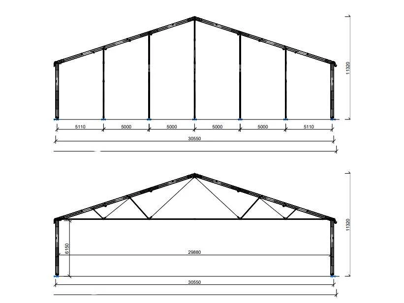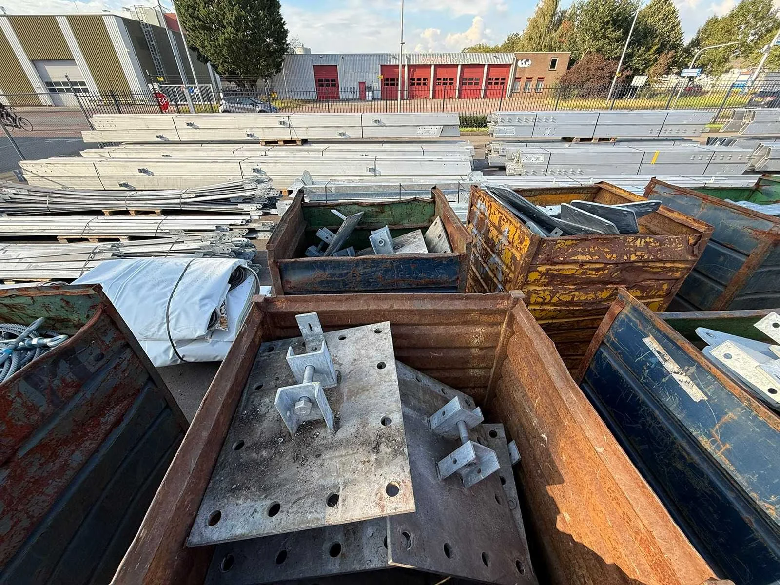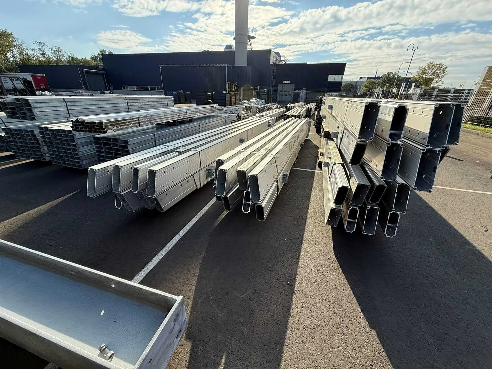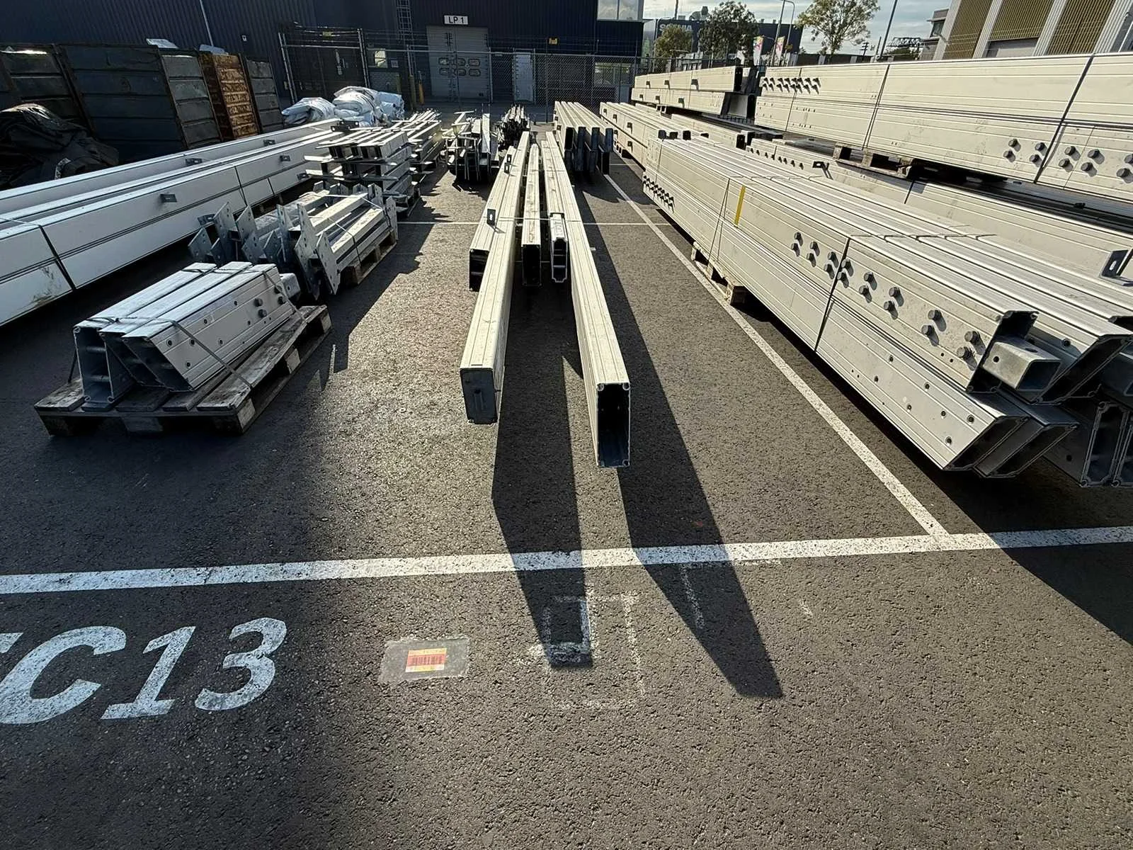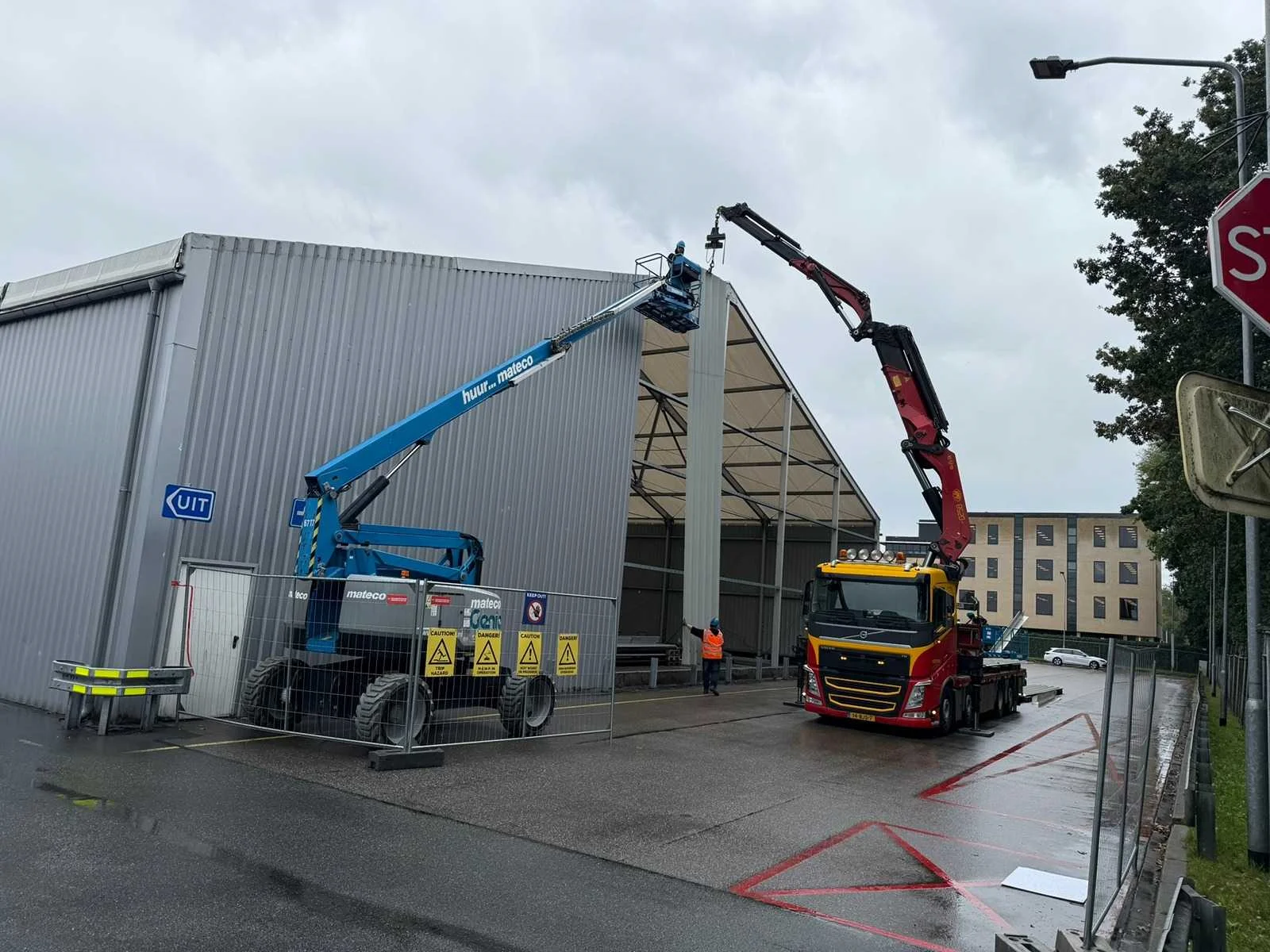 Alu hal/semi permanente hal van ca 2.466 m2. Hal is reeds gedemonteerd en gereed voor transport. Exclusief gevel beplating en deuren. Merk: Losberger De Boer Materiaal: alu Bouwjaar: 2017 Totaal oppervlakte: 2466m² Nok hoogte: 11320mm Goot hoogte: 6320mm Totale afmeting L: 80320mm Totale afmeting Breedte: 30710mm