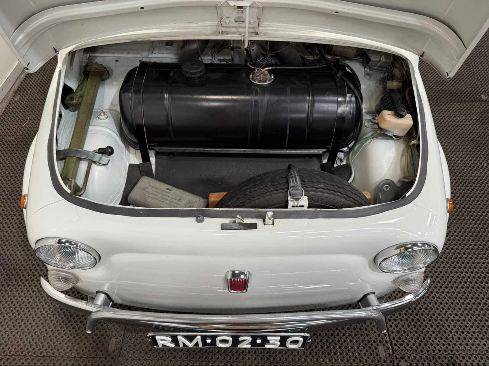 Kenteken: RM-02-30 Merk: Fiat Type: 500 Bouwjaar: 1969 Afgelezen kilometerstand: 39942 NAP status: Geen oordeel Brandstof: benzine Datum eerste toelating: 1969-03-28 Datum eerste toelating (NL): 2025-08-26 Nationaliteit documenten: Nederlands Kentekenpapieren compleet?: true Carrosserie: sedan Vermogen (pk): 18 Vermogen (kW): 13kW Emissieklasse: 0 Aantal deuren: 2 Aantal zitplaatsen: 4 Kleur: wit Cilinderinhoud: 499 Aantal cilinders: 2 Ledig gewicht: 499