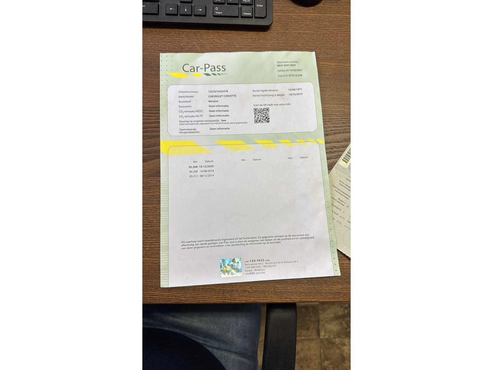 - lakwerk niet mooi - schade voorbumper; zie foto Merk: Chevrolet Type: Corvette Bouwjaar: 1977 Afgelezen kilometerstand: 95650 Nationaliteit documenten: Belgisch Kentekenpapieren compleet?: true