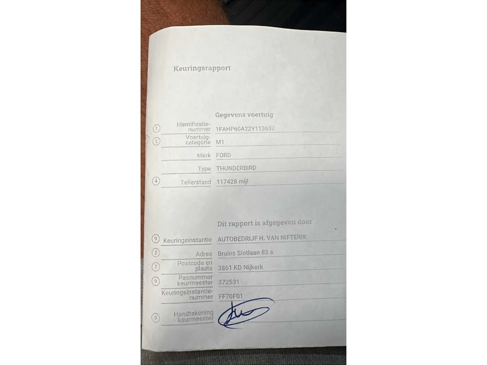 Kenteken: X982rz Merk: Ford Model: Thunderbird Type: Thunderbird Bouwjaar: 2002 Cilinderinhoud: 3900cc Vermogen (kW): 188kW Brandstof: benzine Afgelezen mijlenstand: 117430mi Laadvermogen: 0kg Datum eerste toelating: 2002-03-01 Datum eerste toelating (NL): 2025-08-26 APK vervaldatum: 2026-02-04 Vermogen (pk): 256hp Aantal zitplaatsen: 2 Maximaal trekgewicht ongeremd: 450kg Maximaal trekgewicht geremd: 450kg Kleur: zwart Transmissie: Automaat Emissieklasse: 3 Aantal deuren: 2 Ledig gewicht: 1762kg Bruto BPM (NL): 14022€ Rest BPM: 0€ Aantal cilinders: 8 Carrosserie: cabriolet Nationaliteit documenten: Nederlands Carfax Link: https://was.carfax.eu/v0/api/ccdid/5100016408/svc/201/vinreg/X982RZ/checksum/eyJhbGciOiJIUzI1NiIsInR5cCI6IkpXVCJ9.eyJleHAiOjE3NjE1NTY3Nzh9.tqJ0kSGTWsjtTuy4rnyD65OzDkgbXR3pZk-0DUFbHrQ Start en rijdt: Ja Self drive export possible : true