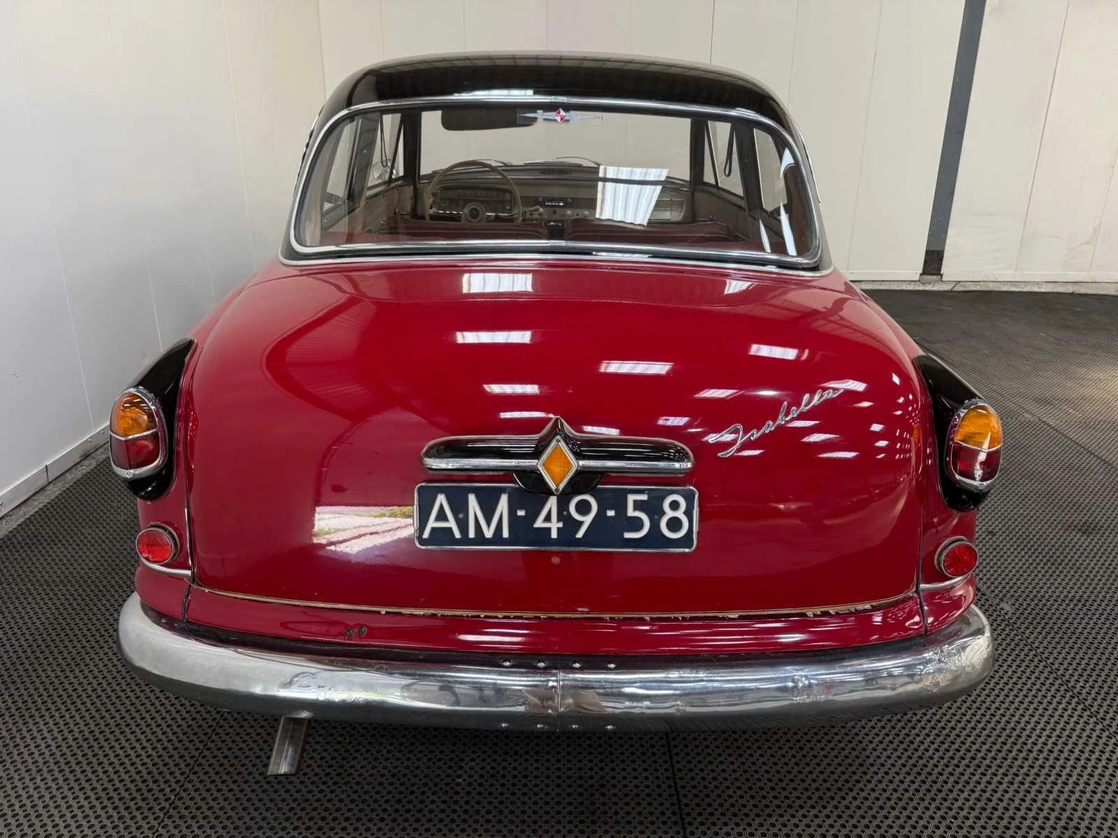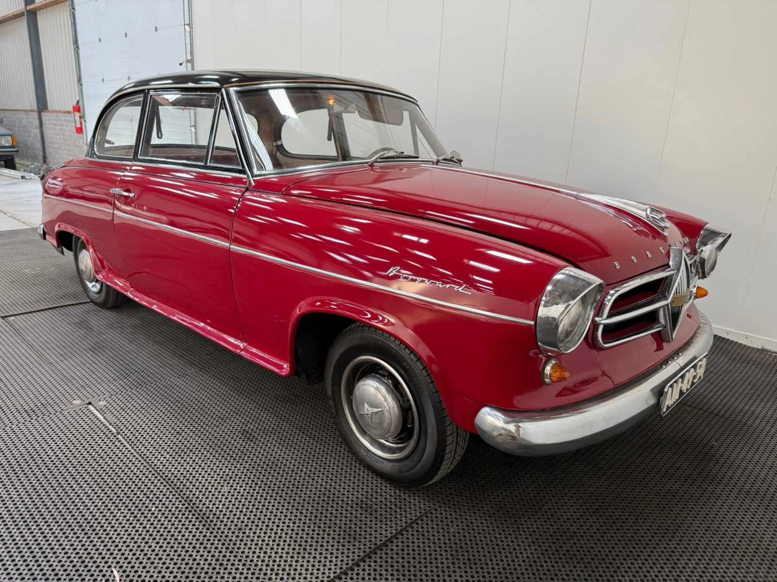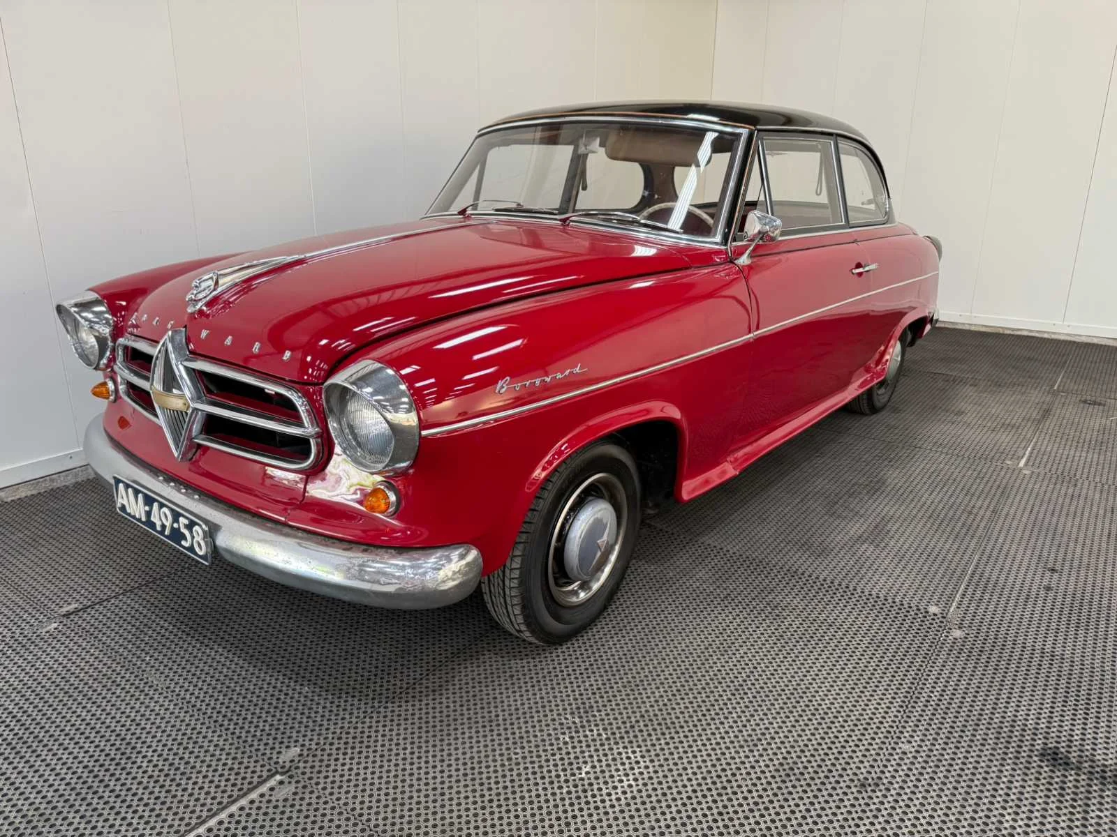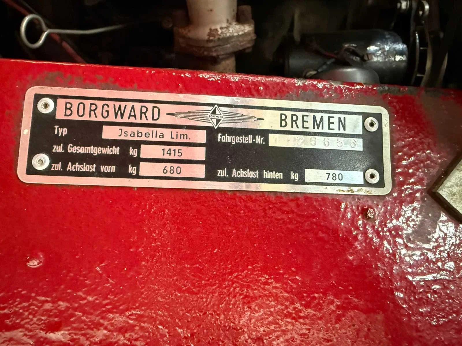 Kenteken: AM-49-58 Merk: Borgward Type: Isabella Bouwjaar: 1959 Afgelezen kilometerstand: 55638 Model: Isabella coupe NAP status: Geen oordeel Brandstof: benzine Datum eerste toelating: 1959-01-08 Datum eerste toelating (NL): 2008-02-15 Nationaliteit documenten: Nederlands Kentekenpapieren compleet?: true Carrosserie: coupe Vermogen (pk): 60 Vermogen (kW): 44kW Emissieklasse: 0 Aantal deuren: 2 Aantal zitplaatsen: 5 Startinformatie: Start en rijdt Kleur: rood Cilinderinhoud: 1500 Aantal cilinders: 4 Ledig gewicht: 1090