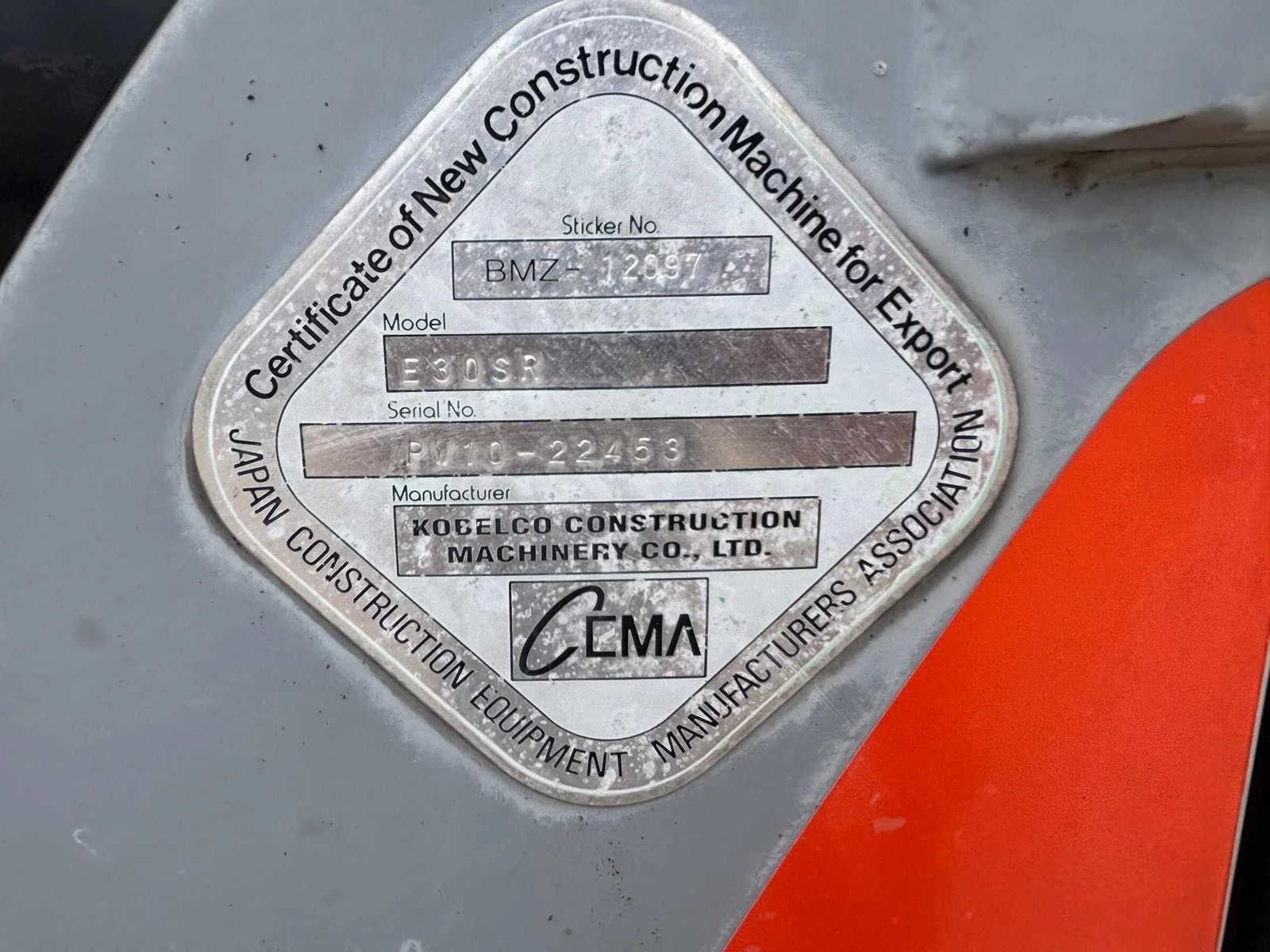 Merk: Fiat Kobelco Type: E30SR Bouwjaar: 2003 Serienummer: PW10-22453 Kenteken: Yanmar Motorvermogen (kW): 16.9kW Afgelezen urenstand: 3900 Eigen gewicht: 3200kg