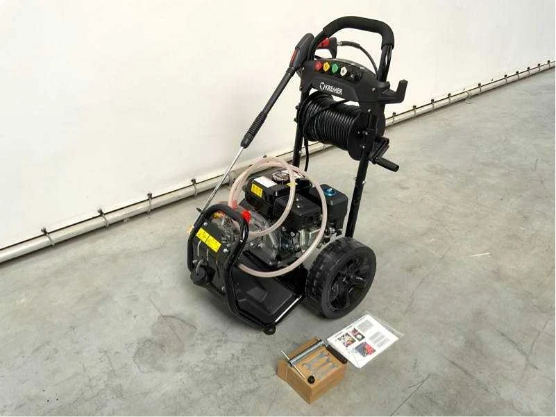Ongebruikt in doos; temperatuurbereik min.: 0 °c; temperatuurbereik max.: 60 °c; capaciteit: 540 l/hr; mobiel: ja; vermogen: 5,14 kW; met diverse toebehoren; 3902; Merk: Kremer Type: KR170B Max. druk: 170bar Gewicht: 36kg Lengte: 770cm Breedte: 580cm Hoogte: 1000cm