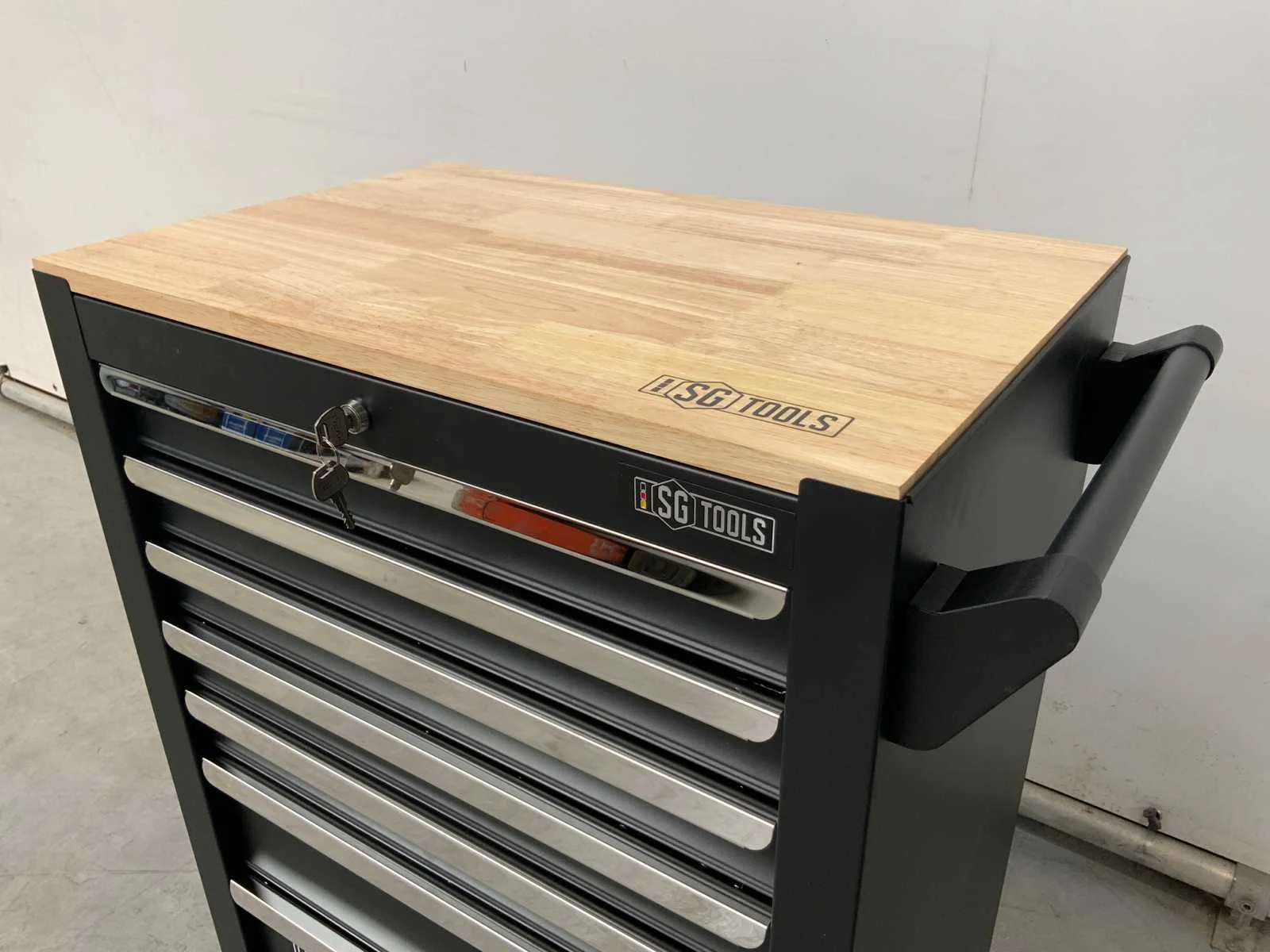 258 delig; schroevendraaiers; bitset; tangen; sleutels; etc; zwenkwielen met rem; 7 lades; 6 gevuld; Merk: Stahlgruppe Type: SG11 Bouwjaar: 2023 Aantal laden: 7 Met inhoud: true Eigen gewicht: 80kg Totale afmeting L: 760mm Totale afmeting Breedte: 460mm Totale afmeting Hoogte: 980mm