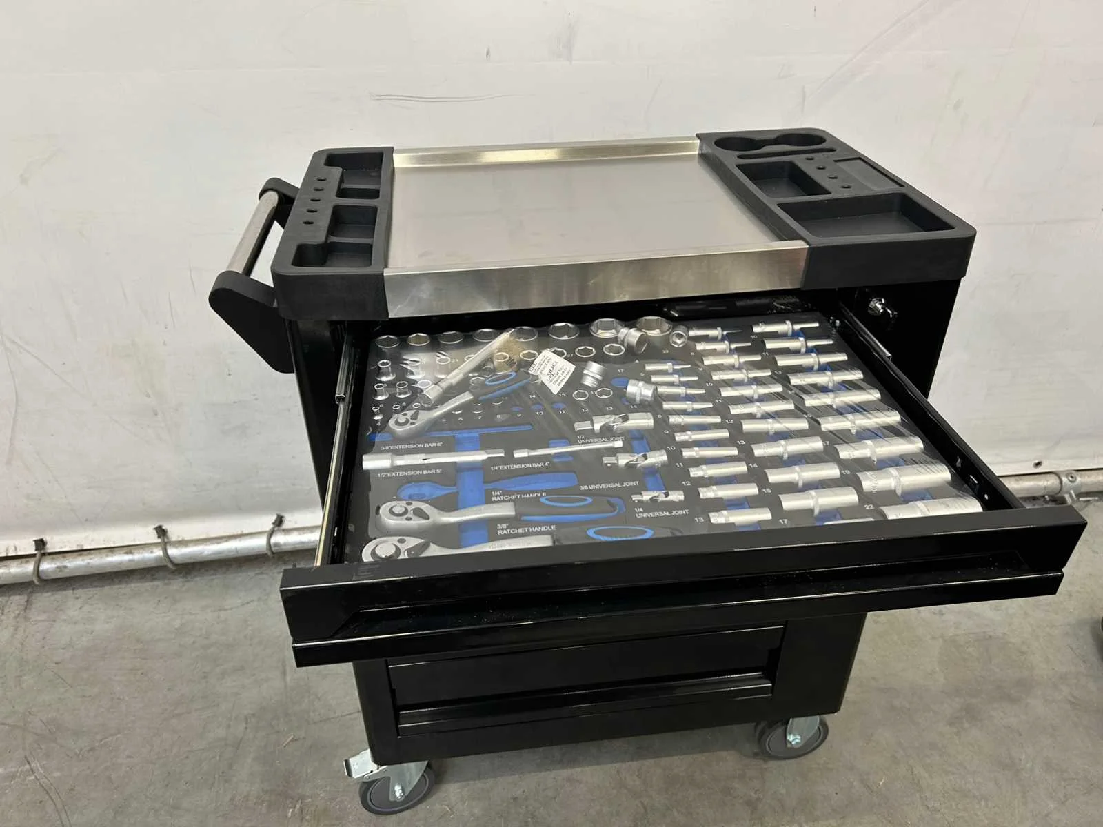 V.v. 2 zwenkwielen; ongebruikt in doos; 2372; Aantal laden: 7 Met inhoud: true Totale afmeting L: 845mm Totale afmeting Breedte: 460mm Totale afmeting Hoogte: 975mm