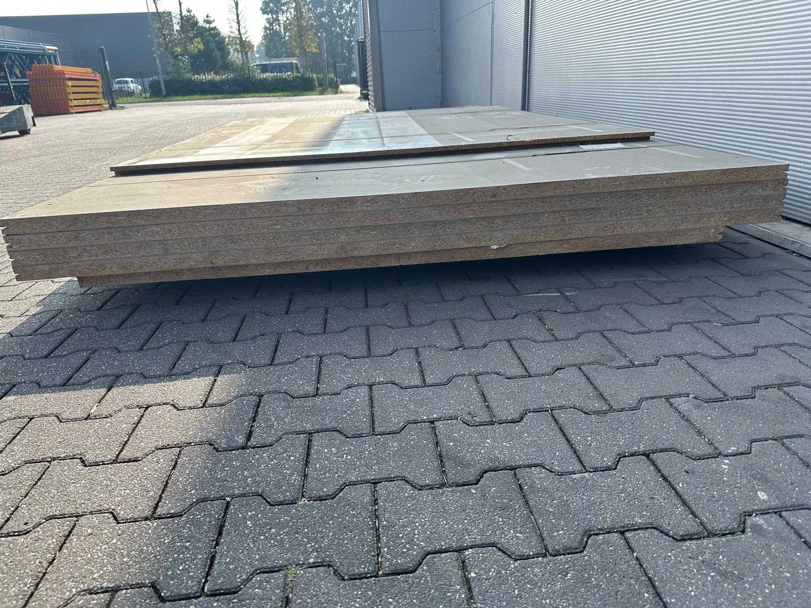 1 plaat van 3930x1700x38mm; 4 platen van 3930x2000x38mm; 2 platen van 2500x2000x18m;