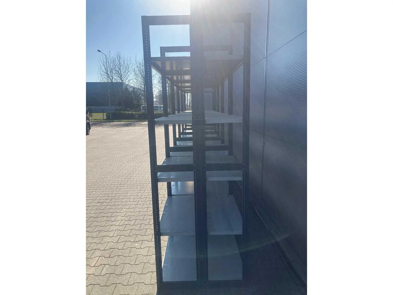 6x staander 2300x800mm (2x400mm); 50x legbord 870x400mm; 7499*6 / 7501*50 Merk: Bruynzeel Sectie afm. b: 800mm Sectie diepte: 870mm Sectie afm. h: 2300mm Aantal staanders: 6 Aantal legborden: 50 Demontabel: true