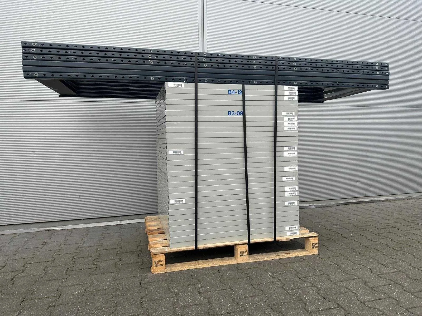 Gebundeld; Gebruikt; 6x staander 2400x800mm; 30x legbord 870x800mm; 6827*6 / 6828*30 Merk: Bruynzeel Sectie afm. b: 800mm Sectie diepte: 870mm Sectie afm. h: 2400mm Aantal staanders: 6 Aantal legborden: 30