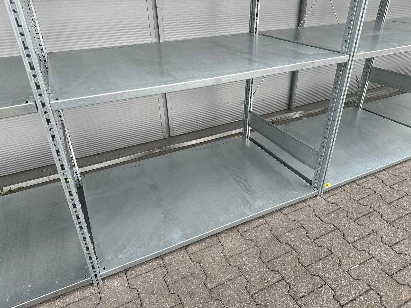 Gebundeld; met 1 schoorset; 6x staander 2540x800mm; 20x legbord 1200x800mm; 7650*6 / 7653*20 Merk: Schäfer Sectie afm. b: 1200mm Sectie diepte: 800mm Sectie afm. h: 2540mm Aantal staanders: 6 Aantal liggers: 20