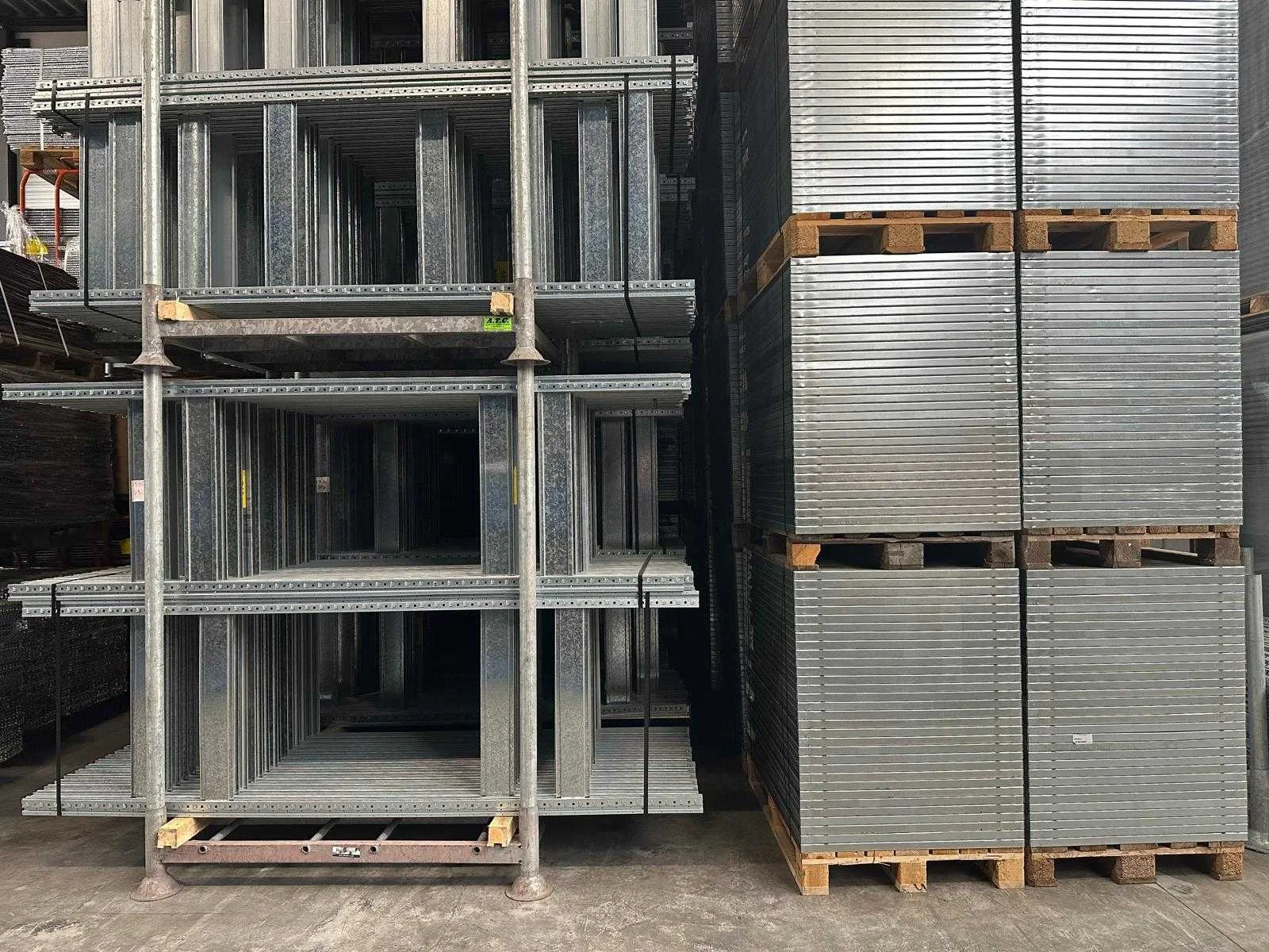 Gebundeld; met schoorset; 12x staander 2540x800mm; 40x legbord 1200x800mm; 7650*12 / 7653*40 Merk: Schäfer Aantal secties: 11 Sectie afm. b: 1200mm Sectie diepte: 800mm Sectie afm. h: 2540mm Aantal staanders: 12 Aantal liggers: 40