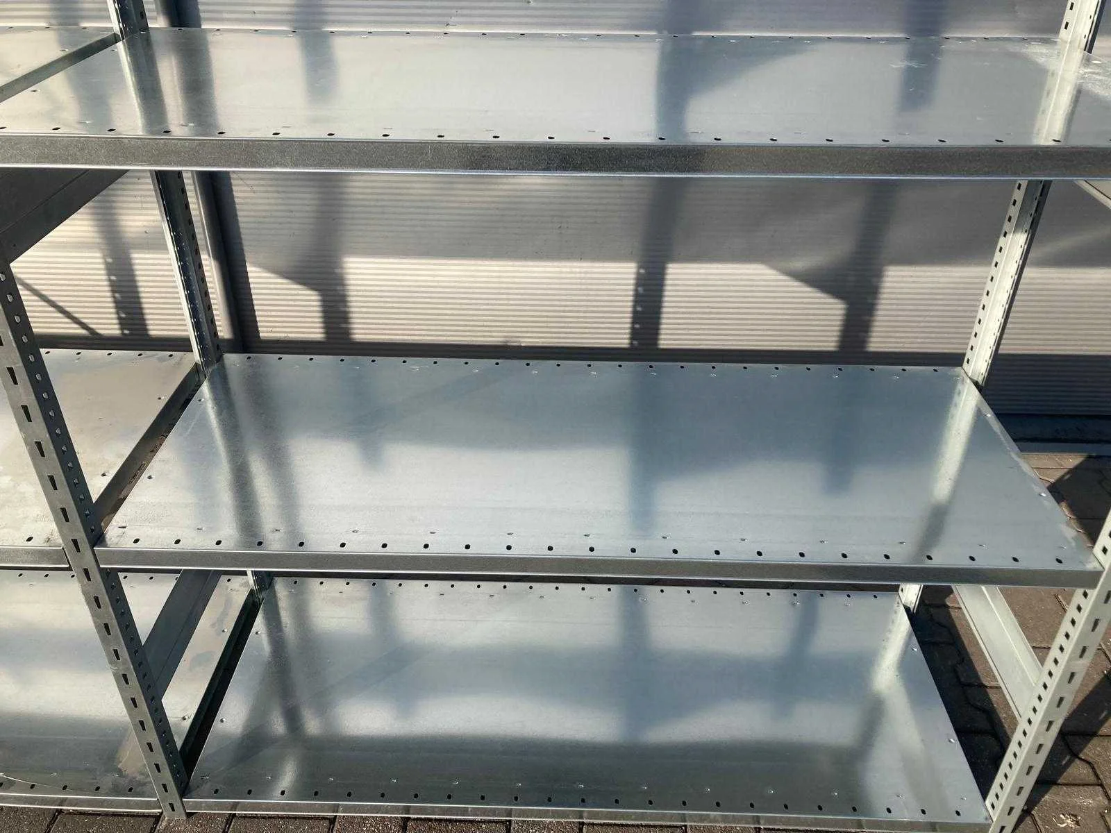 Ongebruikte Stow legbordstelling; wordt netjes gebundeld en transport klaar geleverd; zonder schoorset; Merk: Stow Type: ongebruikt Aantal secties: 4 Sectie afm. b: 965mm Sectie diepte: 500mm Sectie afm. h: 2000mm Aantal staanders: 5 Aantal legborden: 25