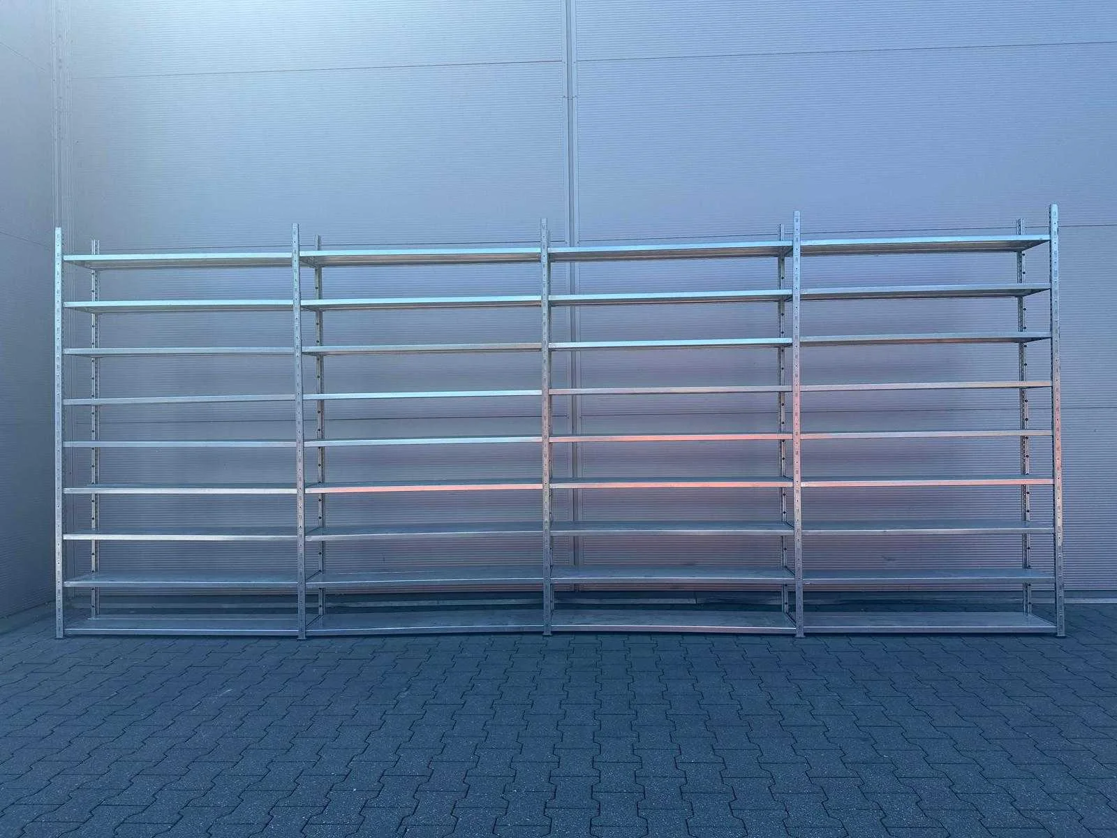 5x Staander 2200x300mm; 36x Legbord 1280x100mm en 36x legbord 1280x200mm; 7524*5 / 7526*36 / 7527*36 Merk: Errex Sectie afm. b: 300mm Sectie diepte: 1280mm Sectie afm. h: 2200mm Aantal staanders: 5 Aantal legborden: 36
