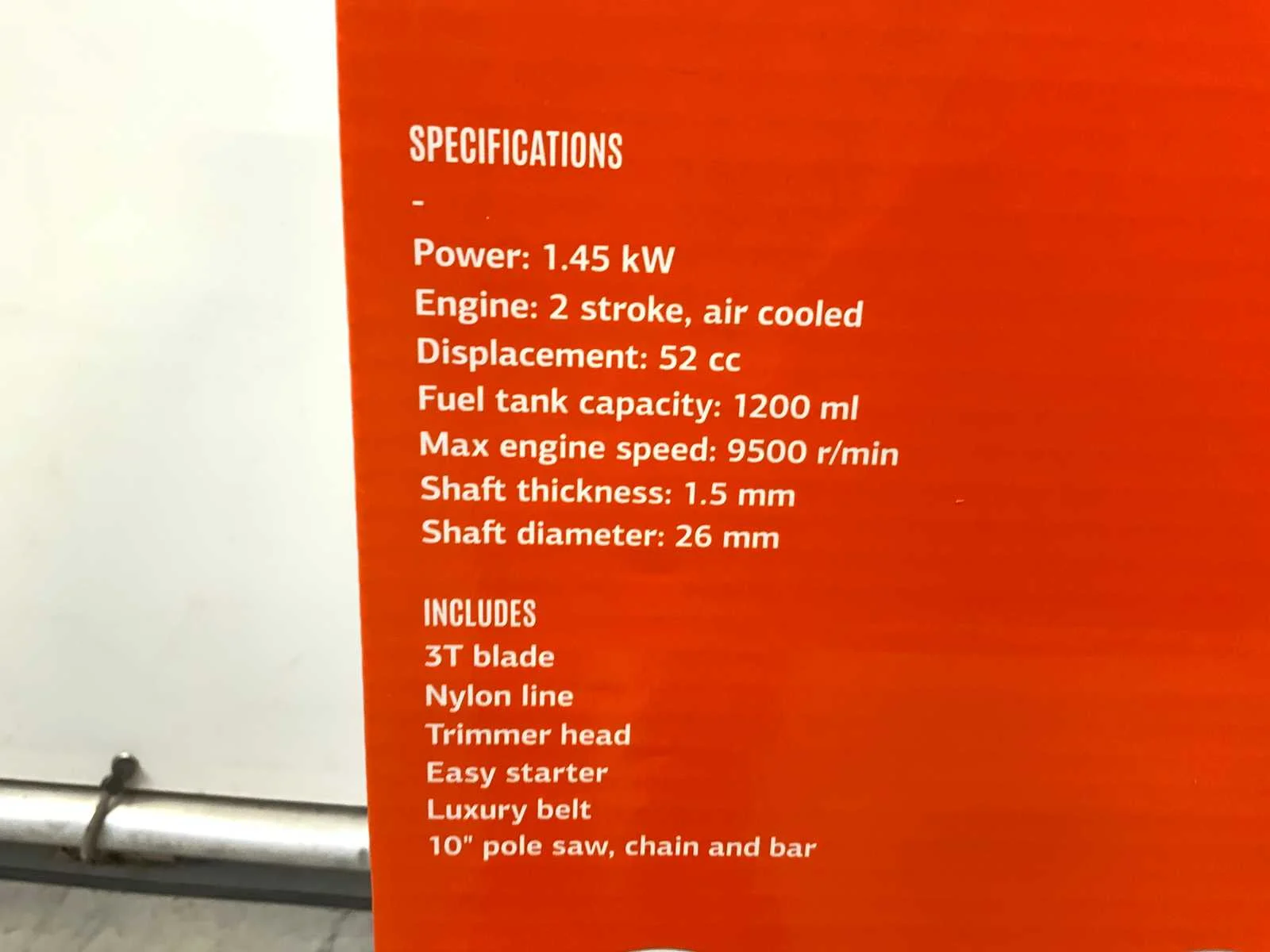 Power 1.45kw; 2 takt; 52cc; tankcapaciteit 1200ml; Max 9500 rpm; shaft thickness 1.5mm; shaft diameter 26mm; 3T blade; nylon trimmer; trimmer head; easy starter; belt; 10" pole saw, chain and bar; Merk: Daewoo Product type: DAMTX520 Kleur: grijs