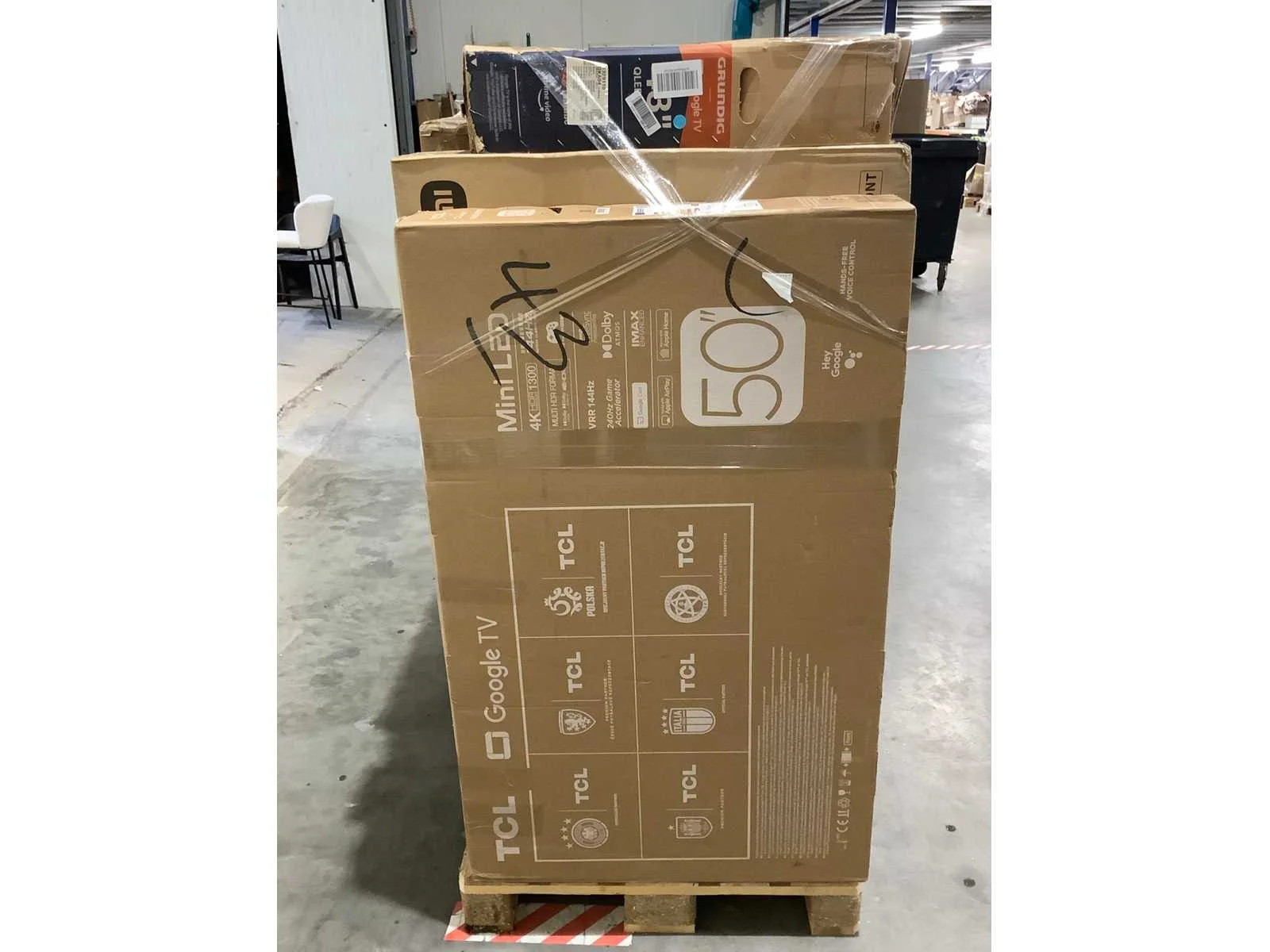 Dit betreft een partij televisies retourgoederen van een grote online retailer. De partij bestaat uit diverse diverse maten televisies. Aantal stuks: 11. Retailwaarde: €3.537,- De televisies zijn niet werkend en zijn te gebruiken voor onderdelen. Kom op de kijkdag om te om zo een goed beeld te krijgen van de reden van retour. Zie foto's voor lijst met inhoud. Merk: Pallet