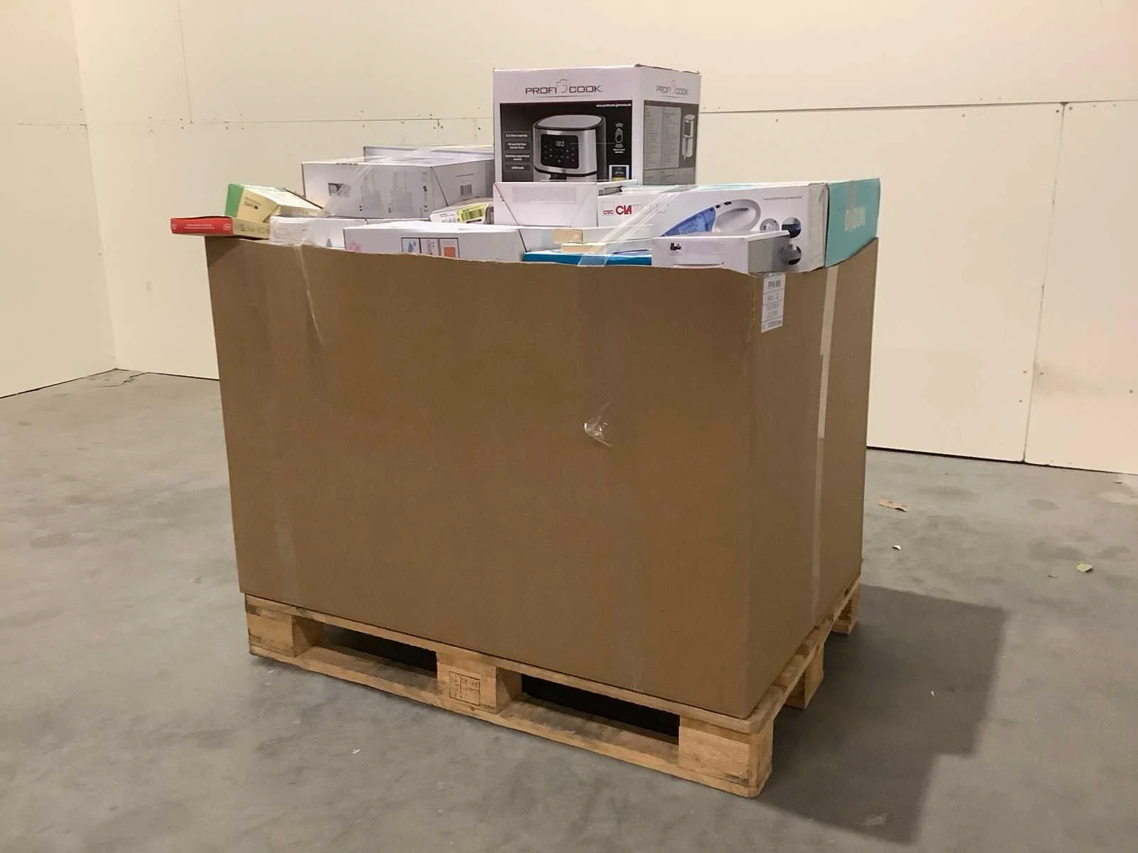 Dit betreft een partij retourgoederen van een grote online retailer. De goederen bestaan uit diverse productcategorieën. Ongecontroleerd: werking onbekend (mix van werkend, incompleet, beschadigd, te gebruiken voor onderdelen). Kom op de kijkdag om te om zo een goed beeld te krijgen van de reden van retour. Merk: Pallet