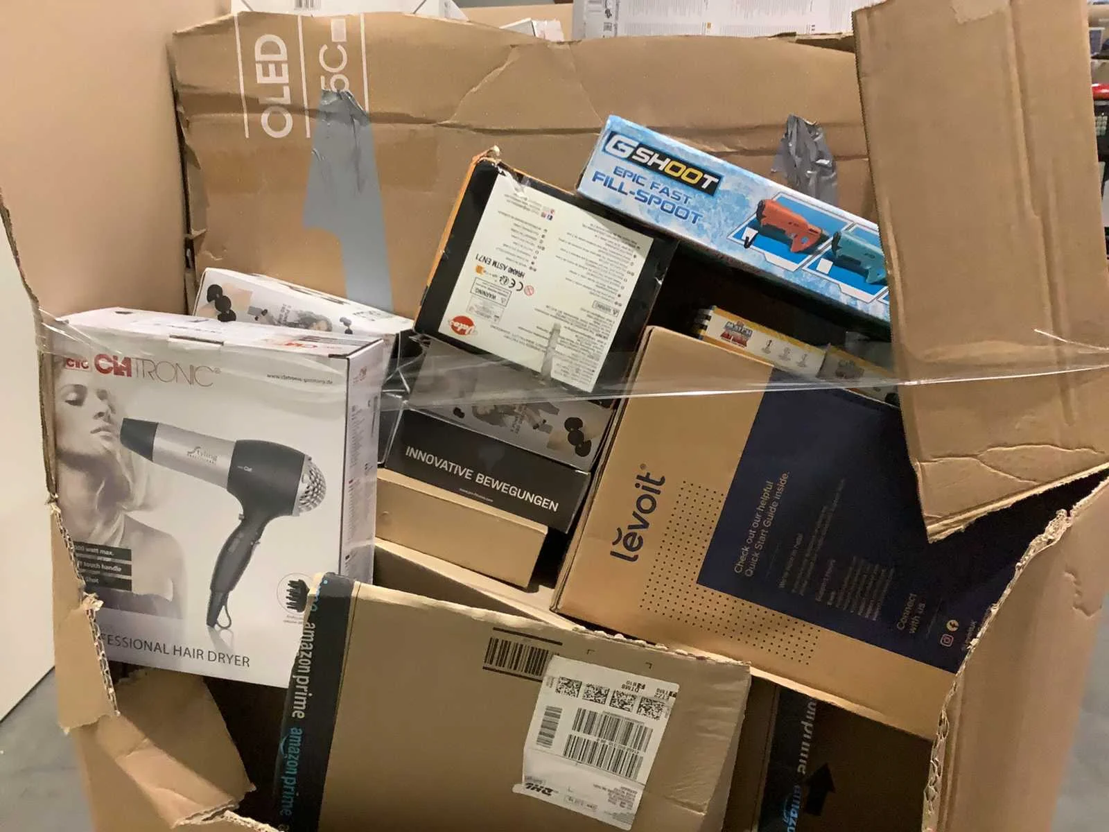 Dit betreft een partij retourgoederen van een grote online retailer. De goederen bestaan uit diverse productcategorieën. Ongecontroleerd: werking onbekend (mix van werkend, incompleet, beschadigd, te gebruiken voor onderdelen). Kom op de kijkdag om te om zo een goed beeld te krijgen van de reden van retour. Merk: Pallet Gewicht: 119kg Lengte: 120cm Breedte: 80cm Hoogte: 140cm