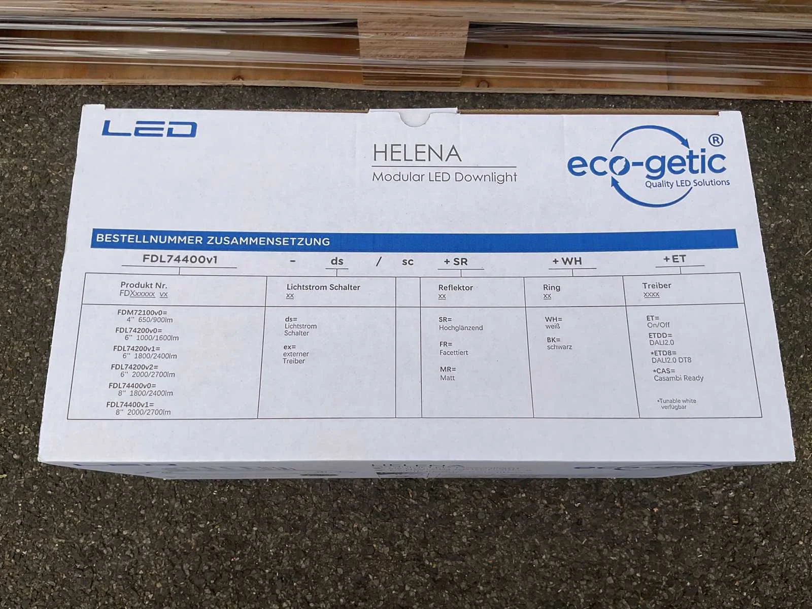 De Eco-Getic Helena is een modulaire LED downlight, ontwikkeld voor efficiënte en flexibele verlichting. Vermogen: schakelbaar tussen 19,5W en 25W. Lichtopbrengst: 1860–2500 lumen (3000K) / 2000–2700 lumen (4000K). Lichtkleur: omschakelbaar tussen warmwit (3000K) en neutraal wit (4000K). Uitstraalhoek: 90° voor brede, gelijkmatige verlichting. Kleurweergave: Ra >80 voor natuurgetrouwe kleurweergave. Behuizing: mat wit (WH26), moderne uitstraling. Inbouwmaat (cut-out): Ø200 mm. Afmetingen: Ø225 mm x H97 mm. Beschermingsklasse: IP20/IP54 (geschikt voor binnenruimtes, spatwaterdicht aan voorzijde). Eenvoudige Installatie met doorlussing (in-out bedrading). Let op, dit kavel heeft een totale voorraad van 288 downlight/spots. Deze zijn verdeeld over 12 overdozen van 24 stuks. Merk: Eco-getic Model: Helena Product type: inbouwspot Met lichtbron: true Fitting: nvt Wattage: 19,5-25W Lichtbron: LED Kleurtemperatuur: 3000-4000 Kleur: mat wit Lengte: 22,5cm Breedte: 22,5cm Hoogte: 9,7cm Materiaal: aluminium, kunststof