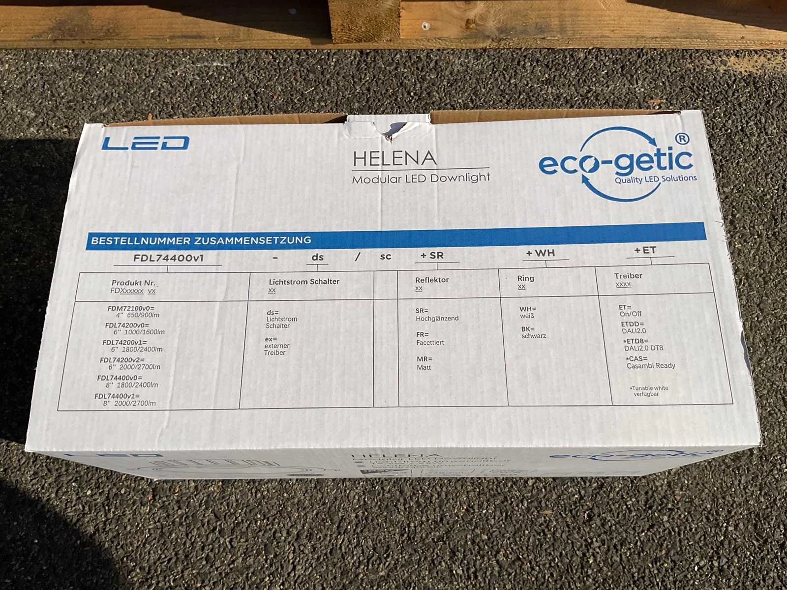De Eco-Getic Helena is een modulaire LED downlight, ontwikkeld voor efficiënte en flexibele verlichting. Vermogen: schakelbaar tussen 19,5W en 25W. Lichtopbrengst: 1860–2500 lumen (3000K) / 2000–2700 lumen (4000K). Lichtkleur: omschakelbaar tussen warmwit (3000K) en neutraal wit (4000K). Uitstraalhoek: 90° voor brede, gelijkmatige verlichting. Kleurweergave: Ra >80 voor natuurgetrouwe kleurweergave. Behuizing: mat wit (WH26), moderne uitstraling. Inbouwmaat (cut-out): Ø200 mm. Afmetingen: Ø225 mm x H97 mm. Beschermingsklasse: IP20/IP54 (geschikt voor binnenruimtes, spatwaterdicht aan voorzijde). Eenvoudige Installatie met doorlussing (in-out bedrading). Let op: deze kavel betreft een voorraad van 192, deze is verdeeld in 8 dozen met 24 stuks. Merk: Eco-getic Model: Helena Product type: inbouwspot Met lichtbron: true Fitting: nvt Wattage: 19,5-25W Lichtbron: LED Kleurtemperatuur: 3000-4000 Kleur: wit Lengte: 22,5cm Breedte: 22,5cm Hoogte: 9,7cm Materiaal: aluminium, kunststof