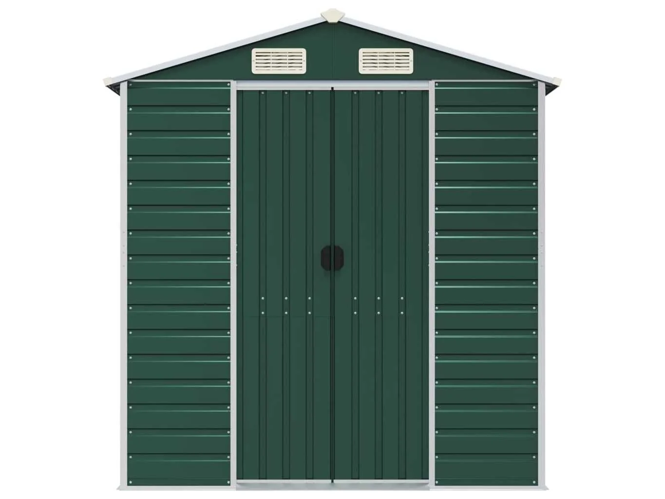 Omschrijving Breid je tuinopbergmogelijkheden uit en bescherm je gereedschap met deze multifunctionele tuinschuur. Robuust materiaal: het tuinschuurtje is gemaakt van gegalvaniseerd staal, dat roestvorming voorkomt en lang meegaat. Staal is een buitengewoon hard en sterk materiaal. Het biedt stevigheid en stabiliteit. Galvanisatie biedt een betere bescherming tegen corrosie en is handig voor producten die buiten of in ruwe omgevingen worden gebruikt. Voldoende opbergruimte: deze metalen schuur biedt voldoende ruimte om je brandhout, tuingereedschap, meubels, uitrusting en meer in op te bergen. Handige handgrepen: de deur van de opbergschuur is voorzien van handgrepen voor gemakkelijke toegang. Goede ventilatie: de berging heeft 4 ventilatieopeningen die zorgen voor ventilatie, om de ophoping van vocht en geurtjes in de schuur te verminderen. Schuin ontwerp: dankzij het schuine dak loopt water er ongehinderd vanaf. Kleur: groen Materiaal: gegalvaniseerd staal Totale afmetingen: 191 x 385 x 198 cm (B x D x H) Afmetingen deur: 80 x 170 cm (B x H) Merk: vidaXL Model: zadeldak Product type: tuinhuis Kleur: donkergroen Gewicht: 125kg Lengte: 385cm Breedte: 191cm Hoogte: 198cm Materiaal: Verzinkt-gespoten staal