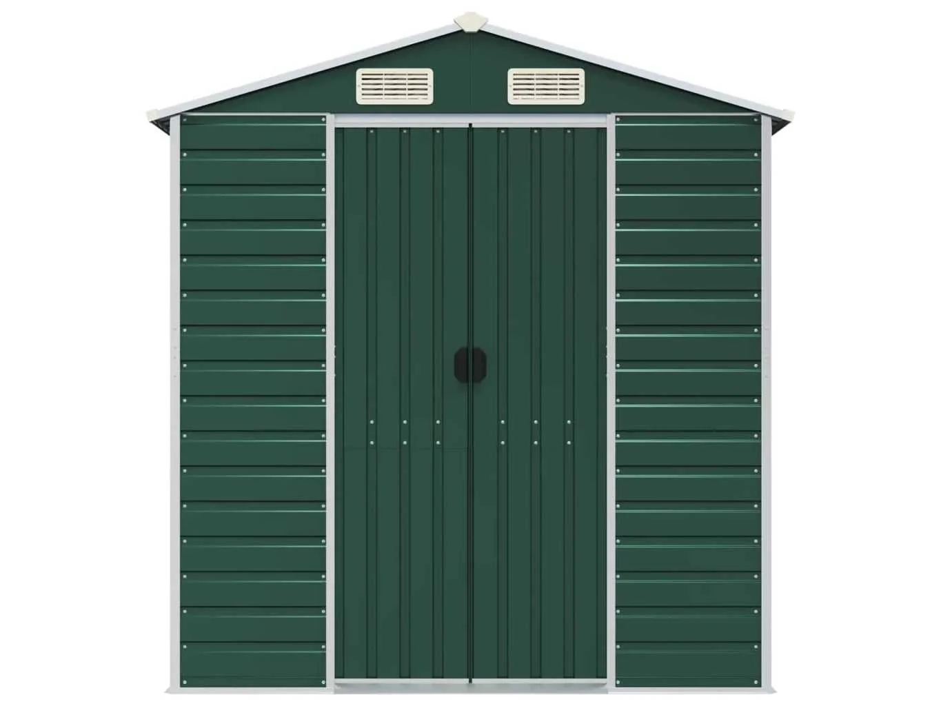 Omschrijving Breid je tuinopbergmogelijkheden uit en bescherm je gereedschap met deze multifunctionele tuinschuur. Robuust materiaal: het tuinschuurtje is gemaakt van gegalvaniseerd staal, dat roestvorming voorkomt en lang meegaat. Staal is een buitengewoon hard en sterk materiaal. Het biedt stevigheid en stabiliteit. Galvanisatie biedt een betere bescherming tegen corrosie en is handig voor producten die buiten of in ruwe omgevingen worden gebruikt. Voldoende opbergruimte: deze metalen schuur biedt voldoende ruimte om je brandhout, tuingereedschap, meubels, uitrusting en meer in op te bergen. Handige handgrepen: de deur van de opbergschuur is voorzien van handgrepen voor gemakkelijke toegang. Goede ventilatie: de berging heeft 4 ventilatieopeningen die zorgen voor ventilatie, om de ophoping van vocht en geurtjes in de schuur te verminderen. Schuin ontwerp: dankzij het schuine dak loopt water er ongehinderd vanaf. Kleur: groen Materiaal: gegalvaniseerd staal Totale afmetingen: 191 x 215 x 198 cm (B x D x H) Afmetingen deur: 80 x 170 cm (B x H) Merk: VidaXL Model: zadeldak Product type: tuinhuis Kleur: donkergroen Gewicht: 100kg Lengte: 215cm Breedte: 191cm Hoogte: 198cm Materiaal: Verzinkt-gespoten staal