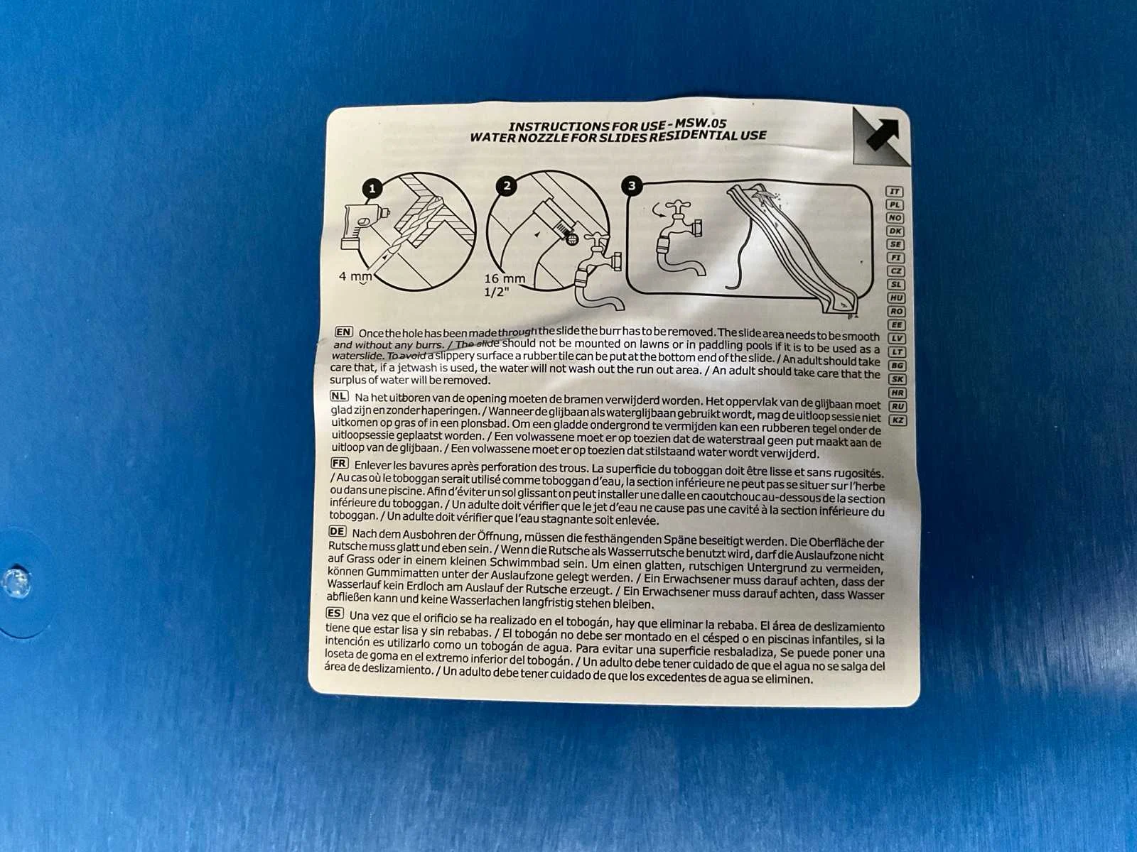 Glijbaan is geschikt voor een vloerhoogte 140-150 cm. Geschikt voor water/zwembad. Zie foto's voor details. Merk: Kar Product type: Glijbaan Model: Blauw Gewicht: 10kg Lengte: 290cm Breedte: 50cm Hoogte: 150cm Materiaal: Kunststof