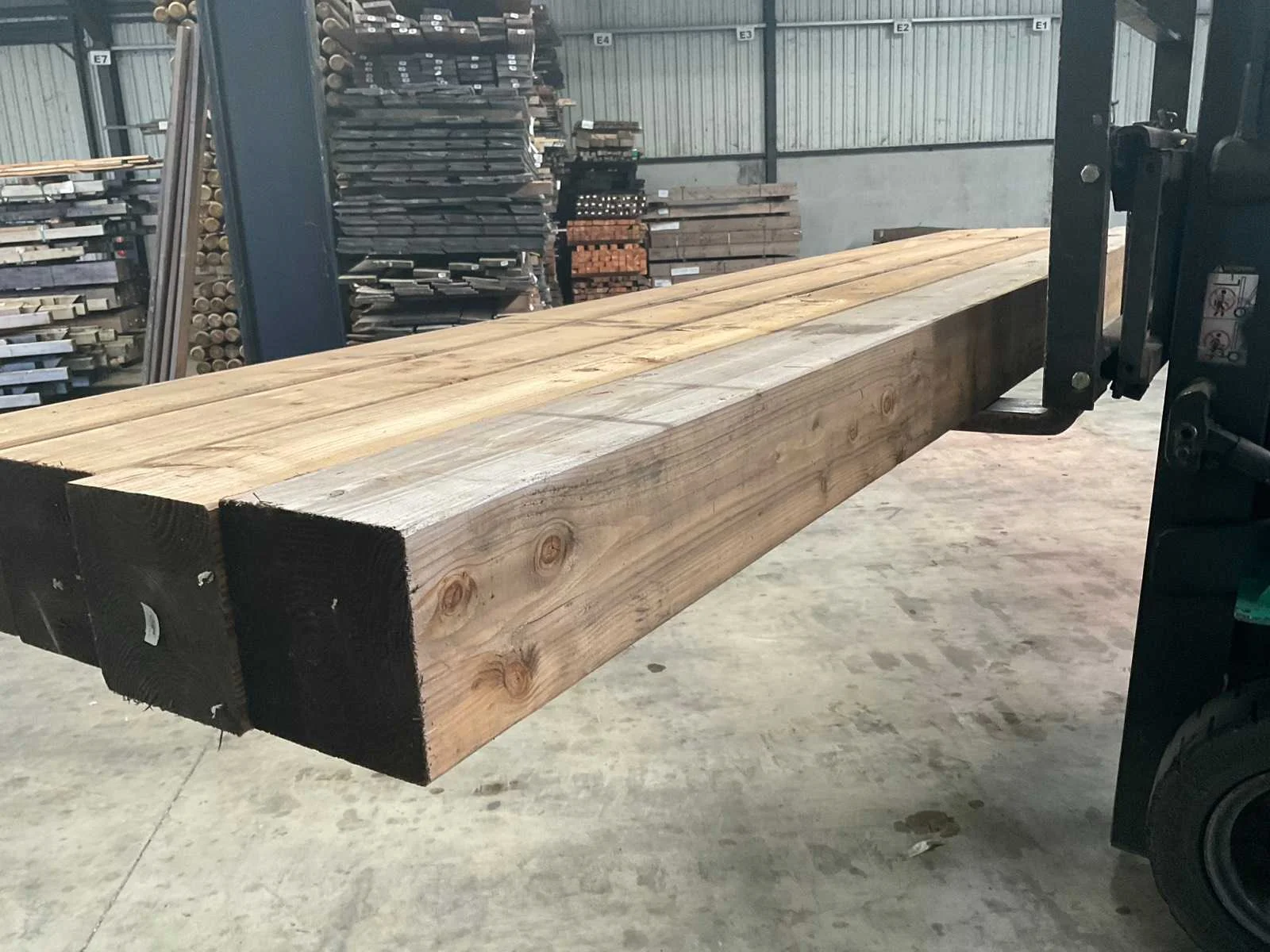 Douglas tuinpaal 400x20x20 cm, zie foto's voor details. Houtsoort: Douglas geïmpregneerd Materiaal: Tripelverlijmt Breedte: 200mm Hoogte: 200mm Kopmaat: 200x200 Gewicht: 300kg Totale afmeting Breedte: 400mm
