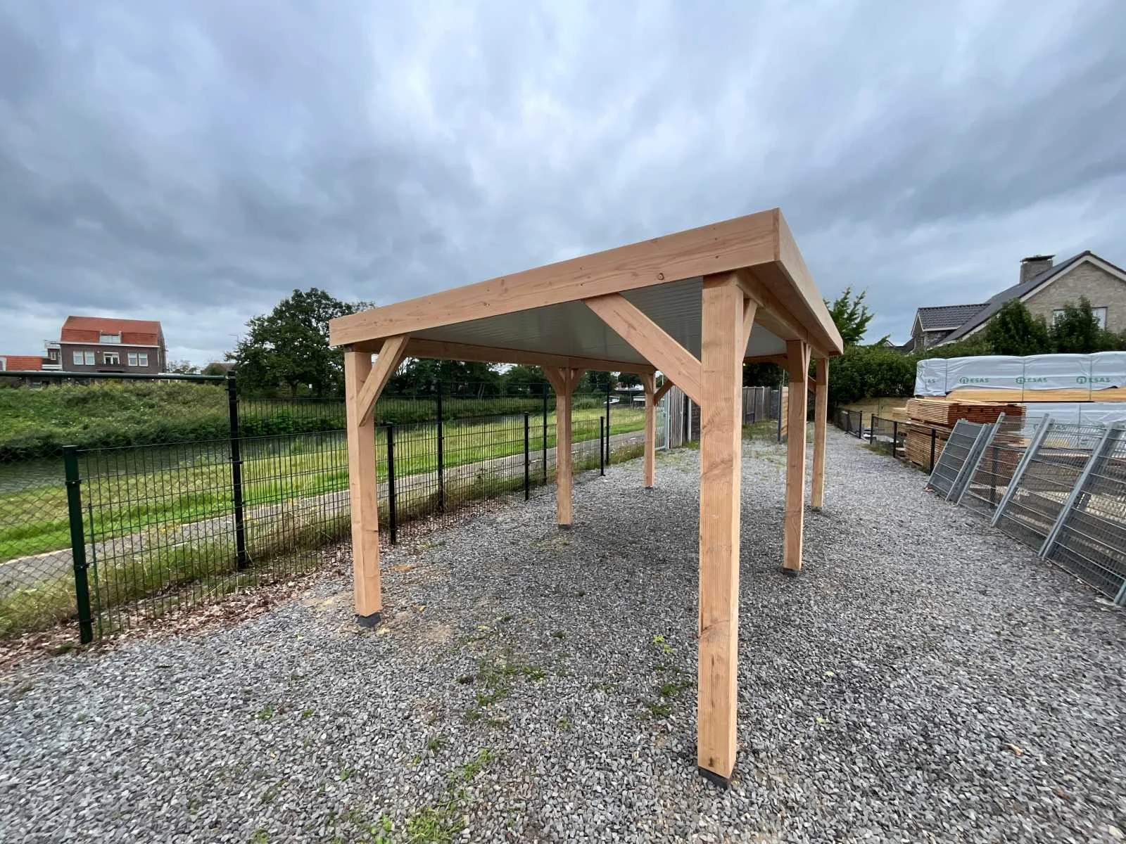Afmeting betreft maat van het dak. Materiaal: 8 x Douglas palen 120x120cm, liggers 120x120cm. Dakbedekking: Sandwich plaat geïsoleerd. Doorloophoogte: 215cm onderzijde, draagbalk aan de voorzijde. Voorzien van montagemateriaal en handleiding. Overkapping wordt als een bouwpakket geleverd. De afmetingen van dit pakket zijn: 400x125x100 cm, 1050 kg. Omschrijving dakplaat: Sandwich plaat is een populair en duurzaam bouwmateriaal om daken te isoleren. Deze bestaat uit twee stalen of aluminium panelen met daartussen een laag isolerend materiaal. Deze is geheel onderhoud vrij en heel gemakkelijk te monteren. Product type: Vrijstaand Gewicht: 1050kg Lengte: 300cm Breedte: 900cm Hoogte: 245cm Materiaal: Douglas geschaafd