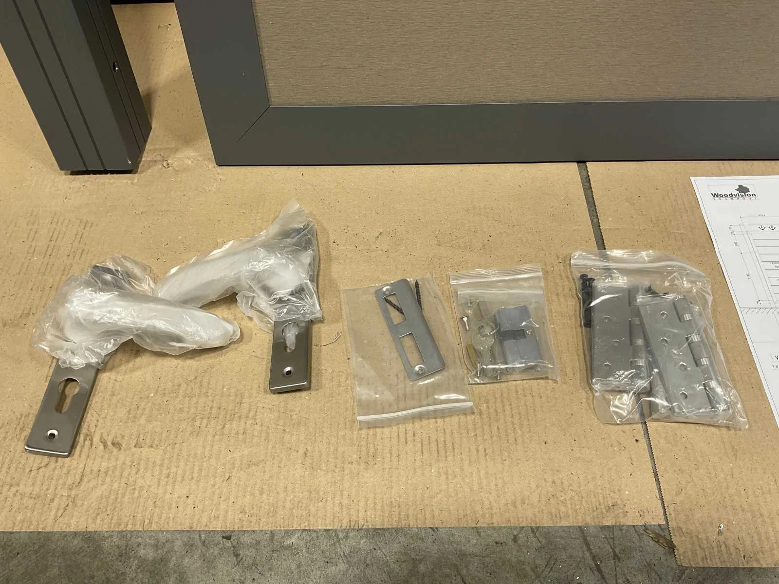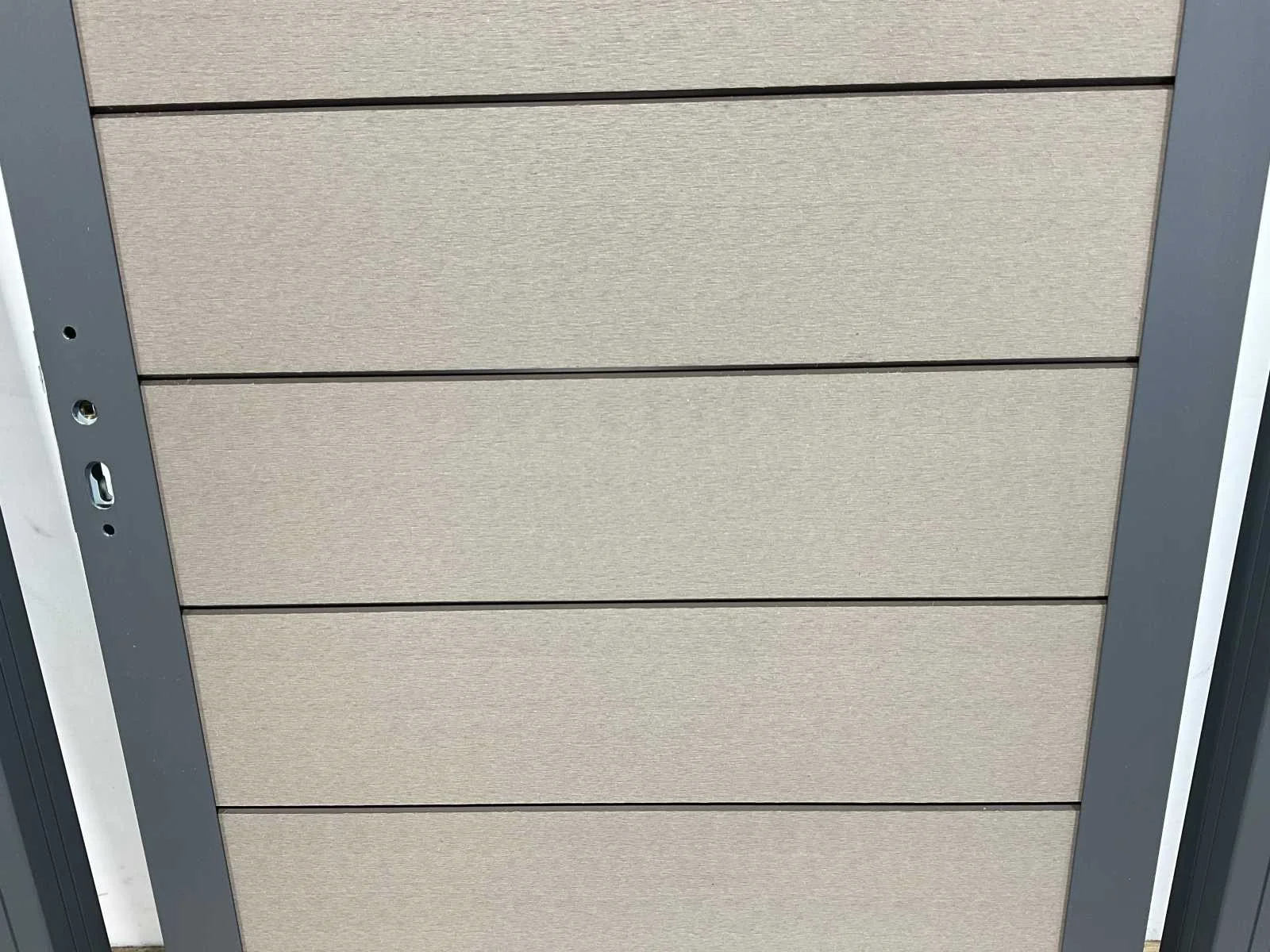 Kavel bevat: 1x Deur met composiet binnenwerk in aluminium frame (183 x 90 cm) 1x Hang-en sluitwerk Let op: Wordt geleverd ZONDER palen. Buitendeur: true Stomp: true Afmeting h: 1830mm Afmeting b: 930mm Kleur: Grijs