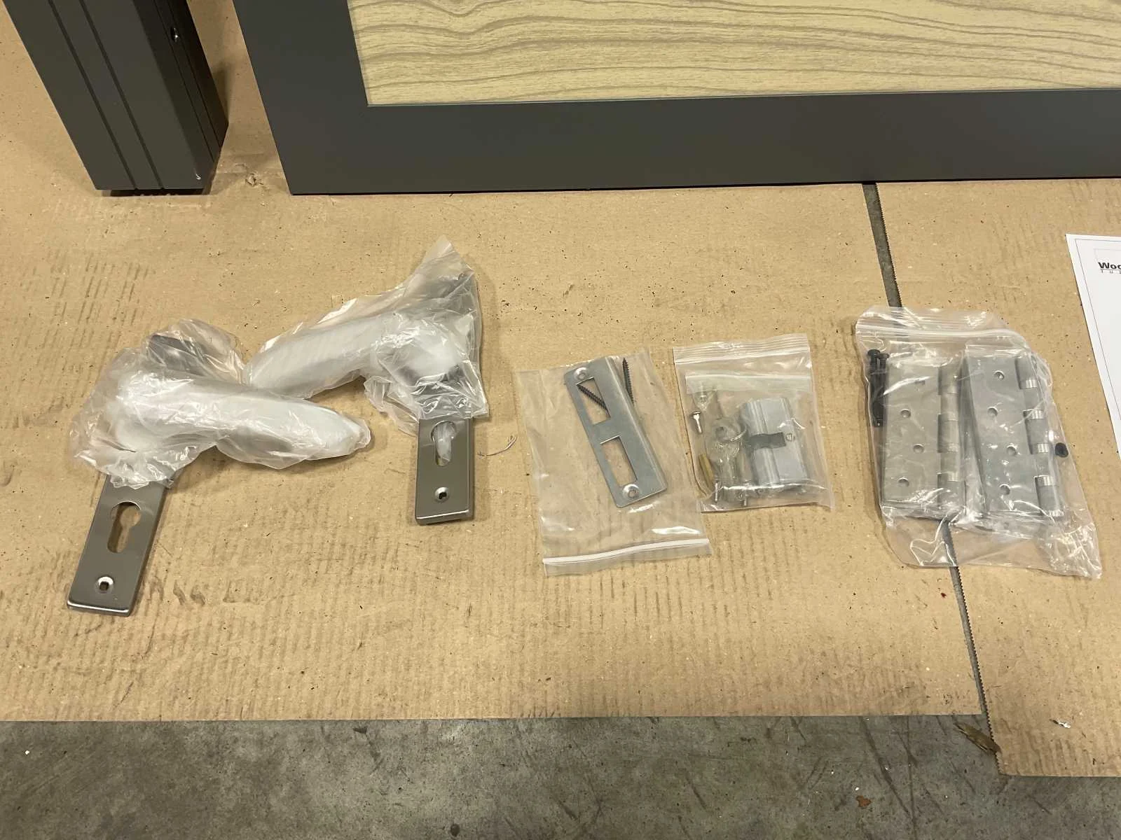 Kavel bevat: 1x Aluminium deur in aluminium frame (183 x 90 cm) 1x Hang-en sluitwerk Let op: Wordt geleverd ZONDER palen. Buitendeur: true Stomp: true Afmeting h: 1830mm Afmeting b: 930mm Aluminium: true Kleur: Houtlook
