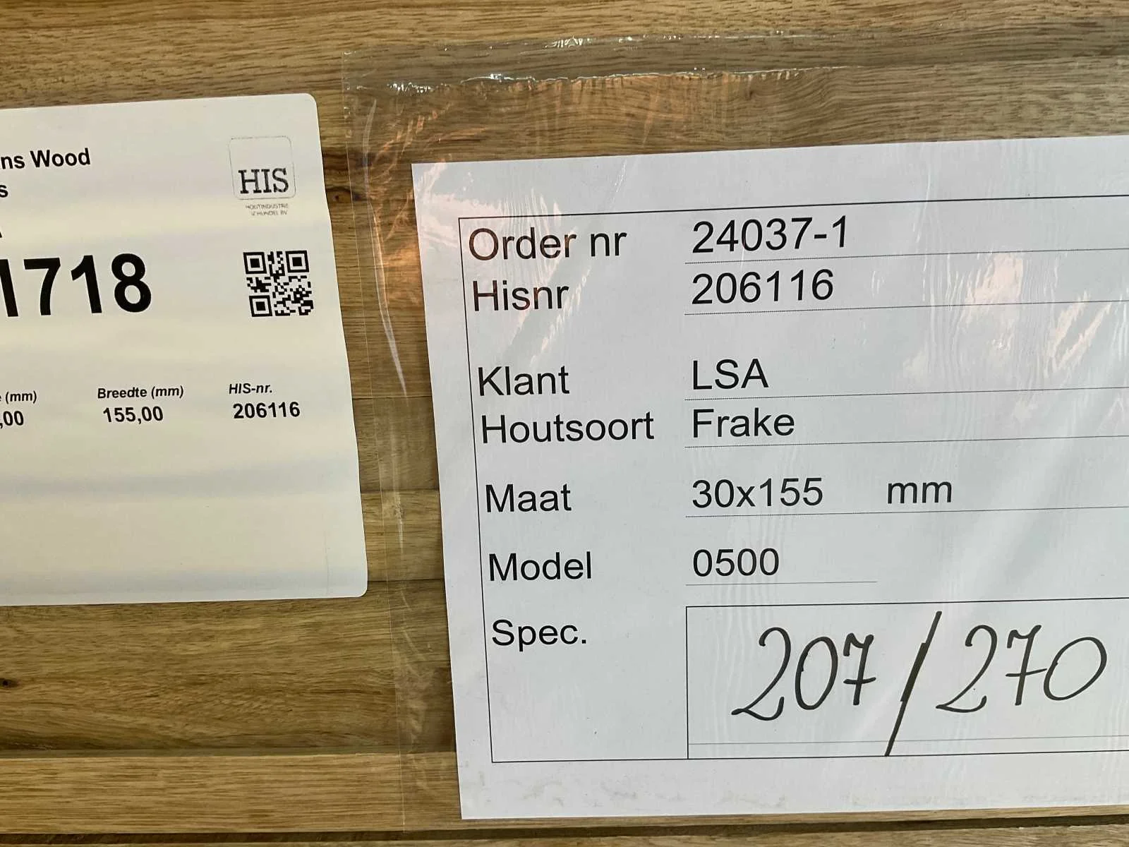 Frake planken met een afmeting van 270 x 15,5 x 3 cm. Lengte: 2700mm Breedte: 155mm Hoogte: 30mm Materiaal: hout