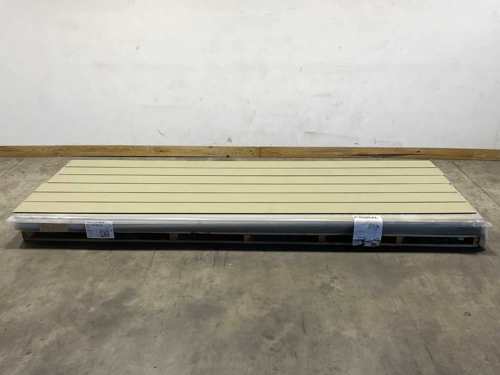 Cedral click smooth 3600x186x12 mm Brandklasse: A2-s1, d0 Gewicht per plank: 12,86 kg Merk: Cedral Model: Click Smooth Product type: Gevestrook Kleur: Beige Lengte: 360cm Breedte: 18,6cm Hoogte: 1,2cm Materiaal: Cementvezel