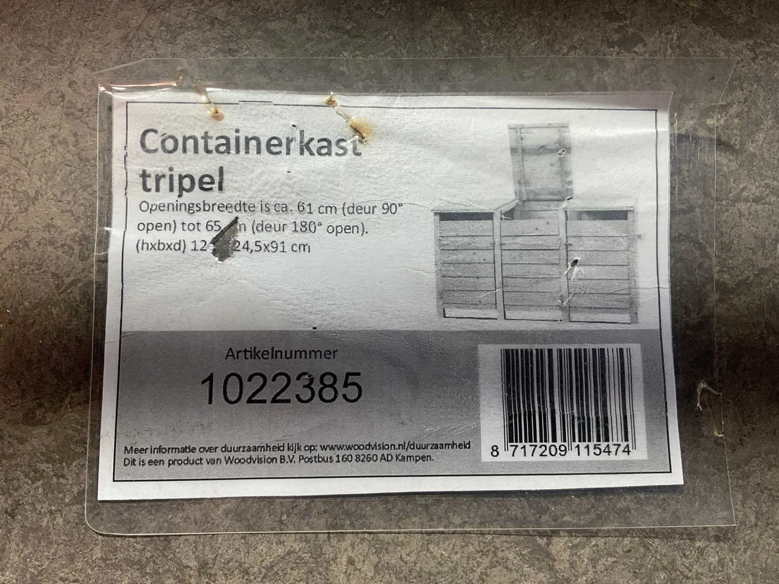 Containerkast/ombouw Triple. Deze ombouw heeft afmetingen van 129x224,5x91 cm en is geschikt voor 3 afvalcontainers. Model: triple Product type: containerkast Lengte: 91cm Breedte: 224,5cm Hoogte: 129cm Materiaal: Vurenhout