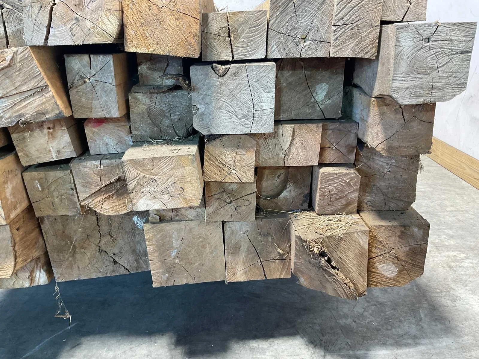 Teakhouten balken gedroogd 240 x diverse diktes van 8 tot 24 cm. 44 stuks, exclusief bok!