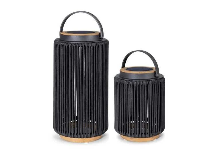 Technische eigenschappen Afmetingen: ø23x48 cm en ø23x34 cm Kleur: zwart Verlichting: solar Gebruik: buiten Brandtijd (volledig opgeladen): 72 uur Materiaal: rvs/teak/polyester fibre rope Opladen: usb-c kabel 2 meter Merk: Easylight Model: Valentino Product type: Solar Buitenlamp Met lichtbron: true Kleur: Zwart Lengte: 23cm Breedte: 48cm