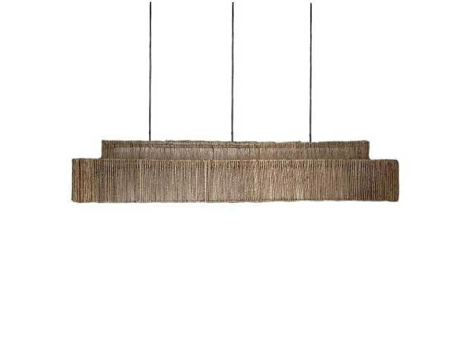 Specificaties Maat 120 x 32 x 25 cm Kleur Naturel Materiaal Jute Vorm Rechthoekig Fitting en snoer Het meegeleverde snoer is 200 cm. Meegeleverd 3 E27 fittingen, 3 snoeren en plafondbevestiging EAN code 8721001690275 Soort lamp Hanglamp Merk: 4Shine Model: Pacha Product type: Rechthoekig Fitting: E27 Verstelbaar: true Kleur: Naturel Lengte: 120cm Breedte: 32cm Hoogte: 25cm Materiaal: Rotan