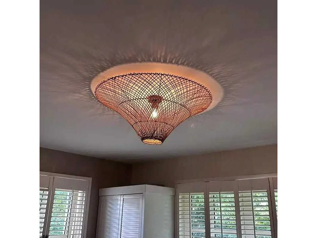 Maat D80 x 31 cm Kleur Naturel Materiaal Naturel Vorm Rond Fitting en snoer Er wordt een plafondfitting meegeleverd. Meegeleverd Fitting met plafondbevestiging EAN code 8721001691104 Soort lamp Plafonniere Merk: 4Shine Model: Solana Product type: Plafonniere Fitting: E27 Verstelbaar: true Kleur: Naturel Lengte: 80cm Breedte: 31cm Materiaal: Rotan
