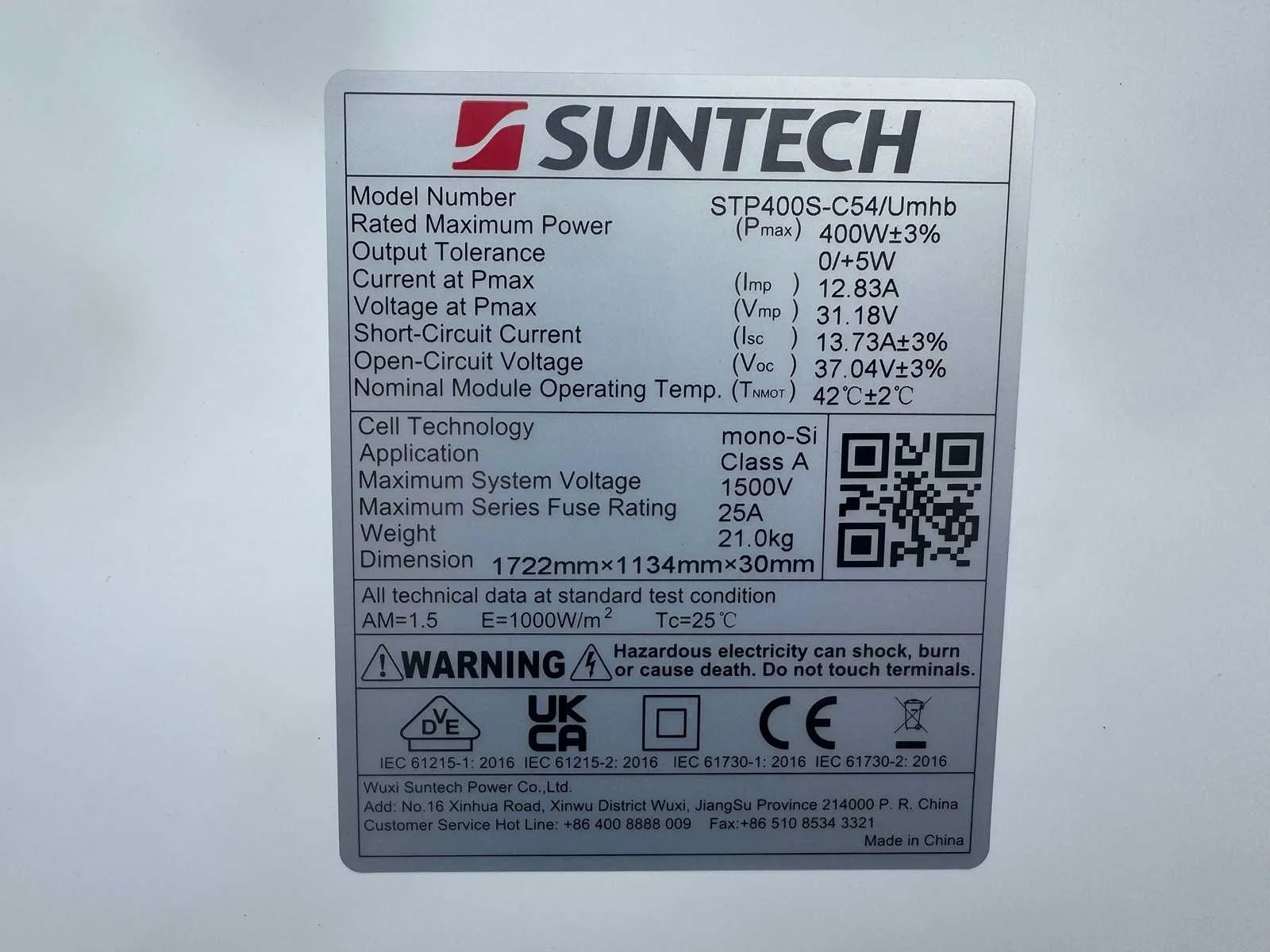 Suntech - set van 100 zonnepanelen (400 wp) met growatt 40 kw omvormer