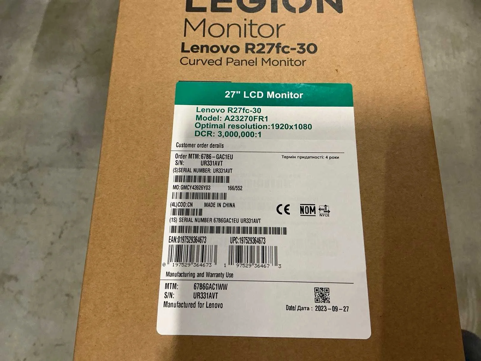 Lenovo legion r27fc-30 lcd monitor