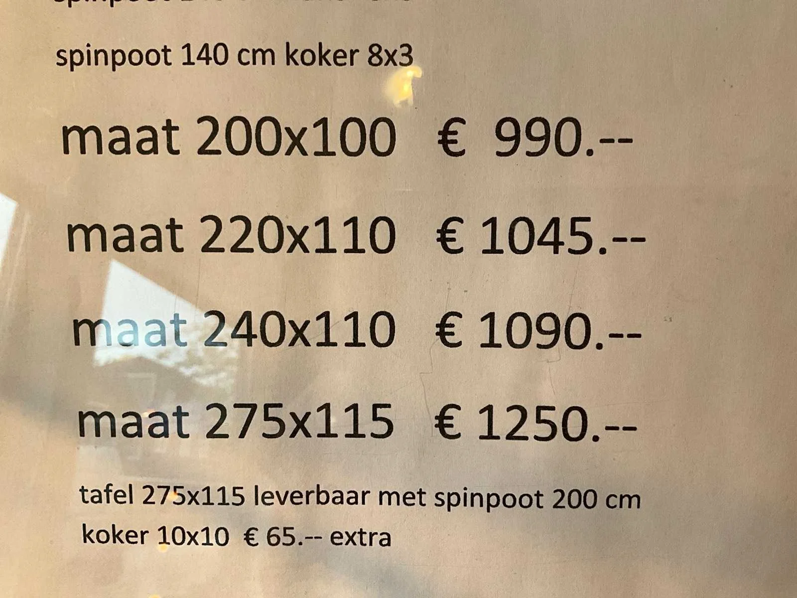 Met spinpoot Lengte: 275cm Breedte: 115cm