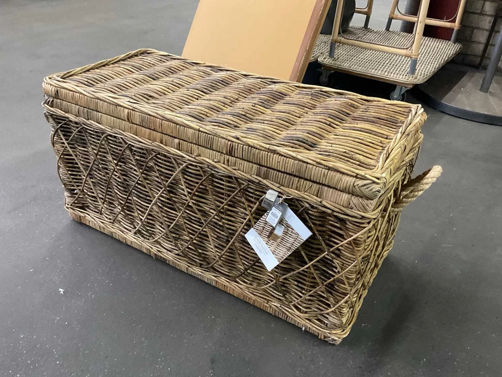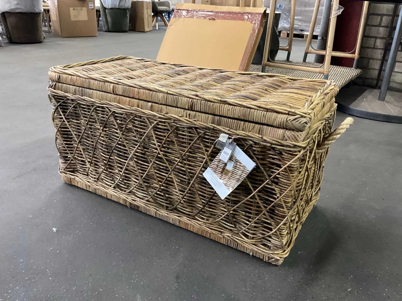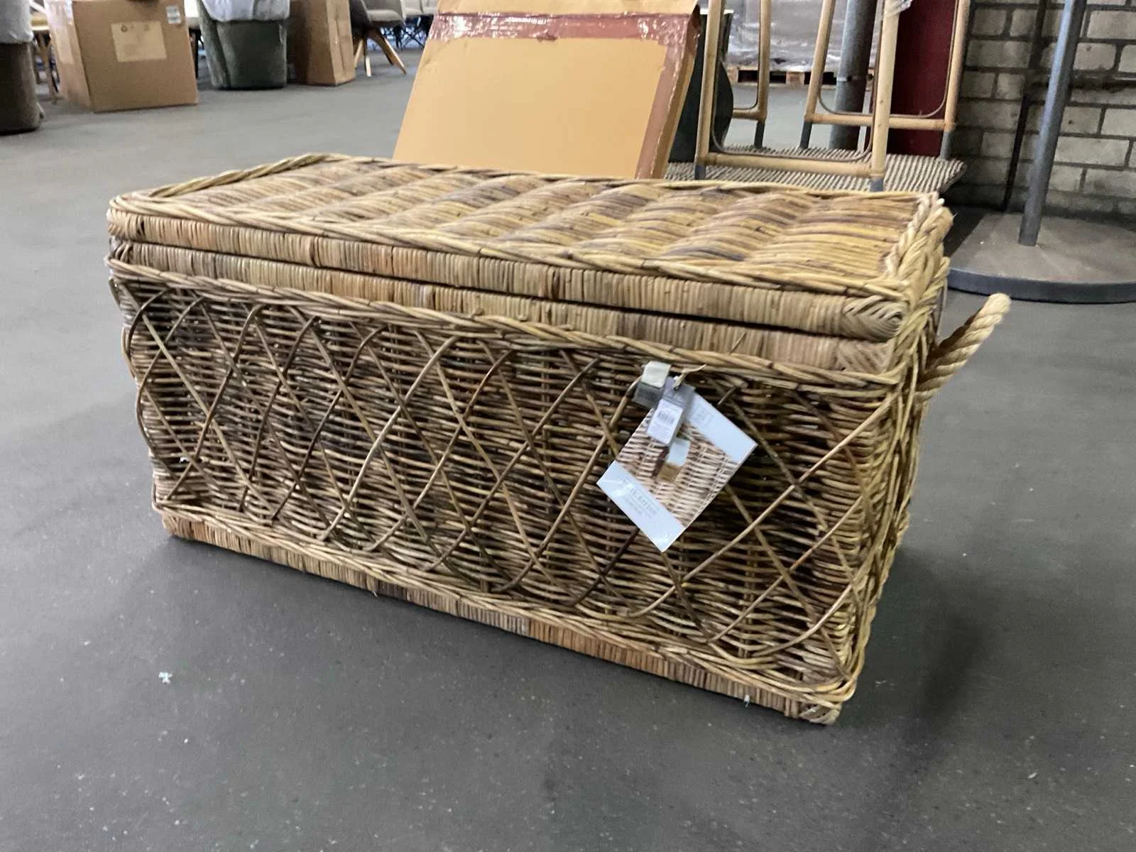 Uit de verpakking gehaald ivm foto’s maken. Merk: Rivièra Maison Model: Nusa dua Lengte: 40cm Breedte: 90cm Hoogte: 46cm Materiaal: Hout