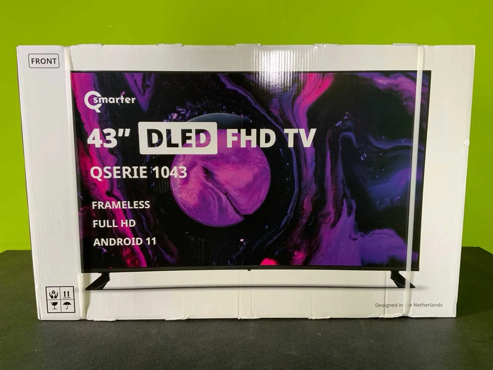 Aansluitingen: HDMI, USB 2.0, LAN, Optical, TV, AV input, CVBS/Audio, Koptelefoon. Ongebruikt, in doos. Doos is beschadigd. Merk: Qsmarter Type: Qserie 1043 Beelddiagonaal: 43''