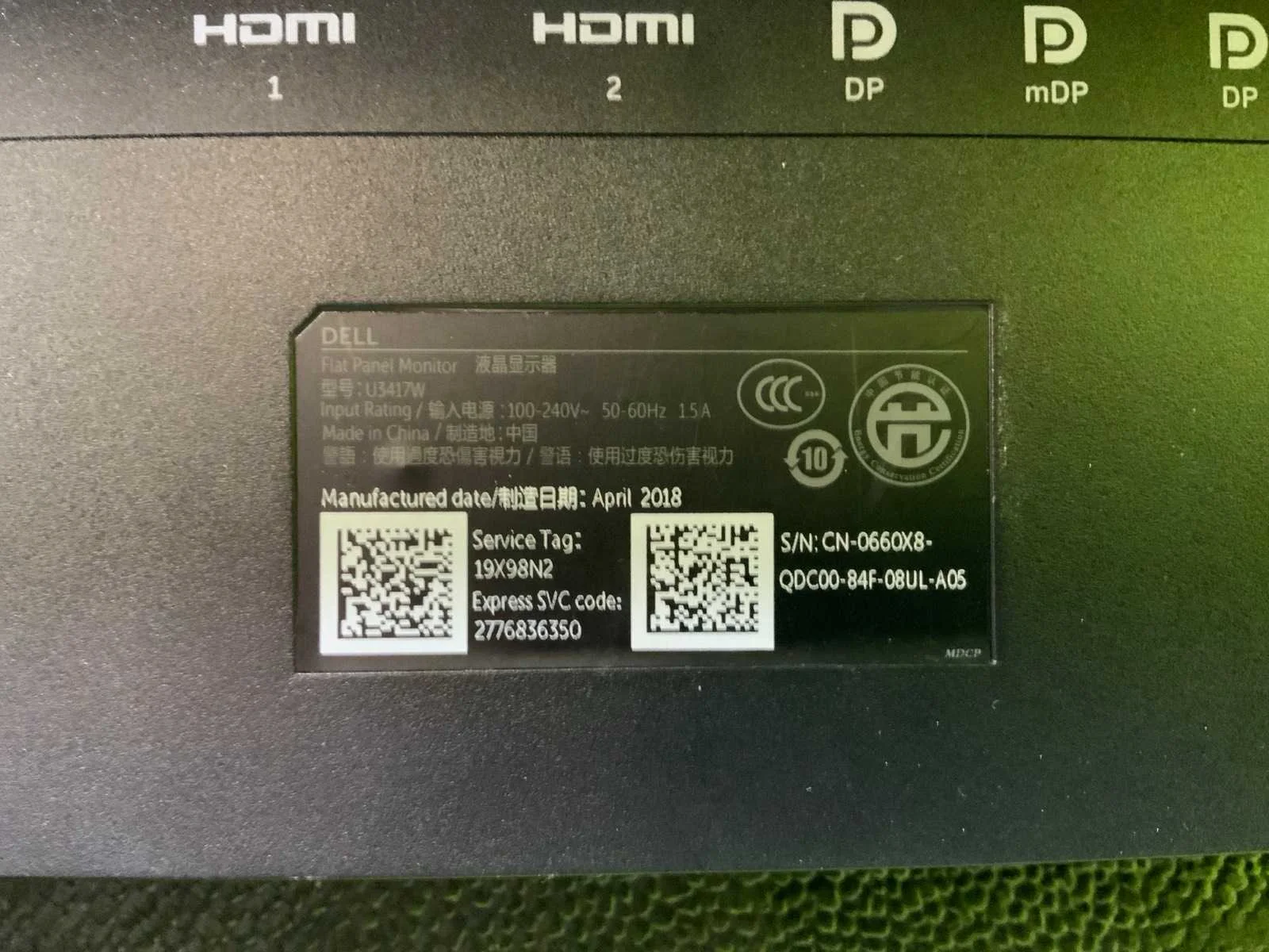 Zonder bekabeling. Monitor bevat sporen van gebruik. Merk: Dell Type: U3417W Beelddiagonaal: 34''