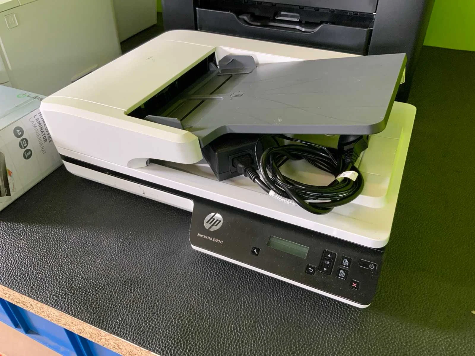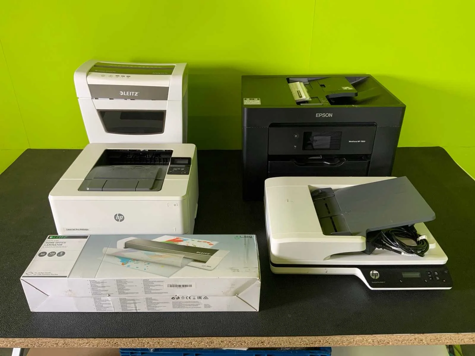 Bestaande uit: Epson WorkForce WF-7830, HP ScanJet Pro 3500 f1, HP laserJet Pro M404dn, HP Color laserJet Pro MFP M281fdw, Leitz IQ Home Office P4 papierversnipperaar en Leitz Ilam lamineermachine.