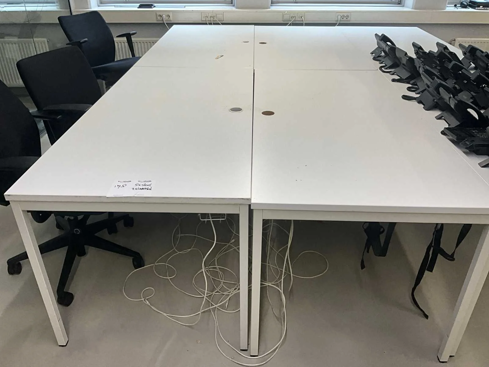 Inclusief 5x bureaustoel, 2, ladeblok, telefoons niet inbegrepen. Lengte: 160cm Breedte: 80cm Hoogte: 75cm
